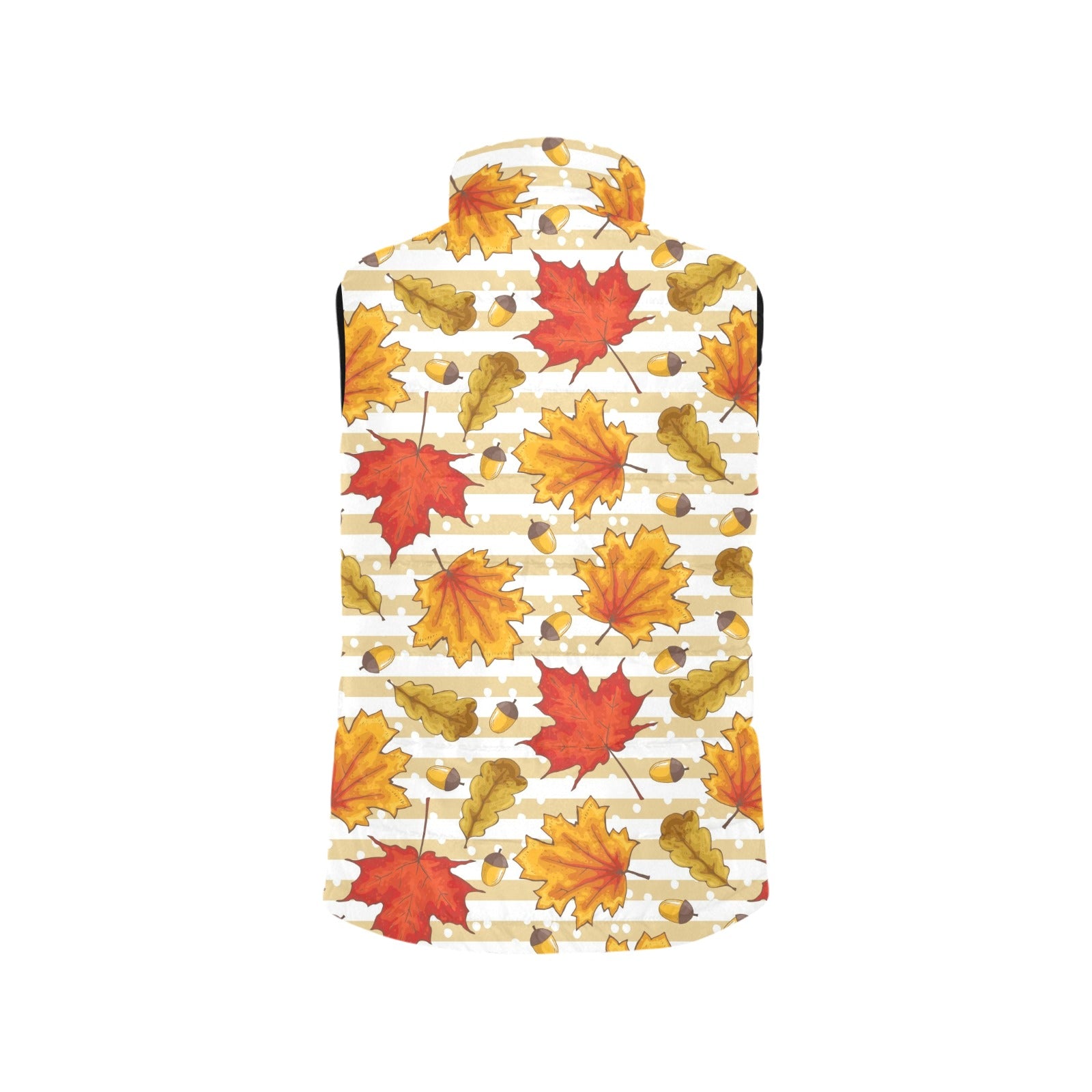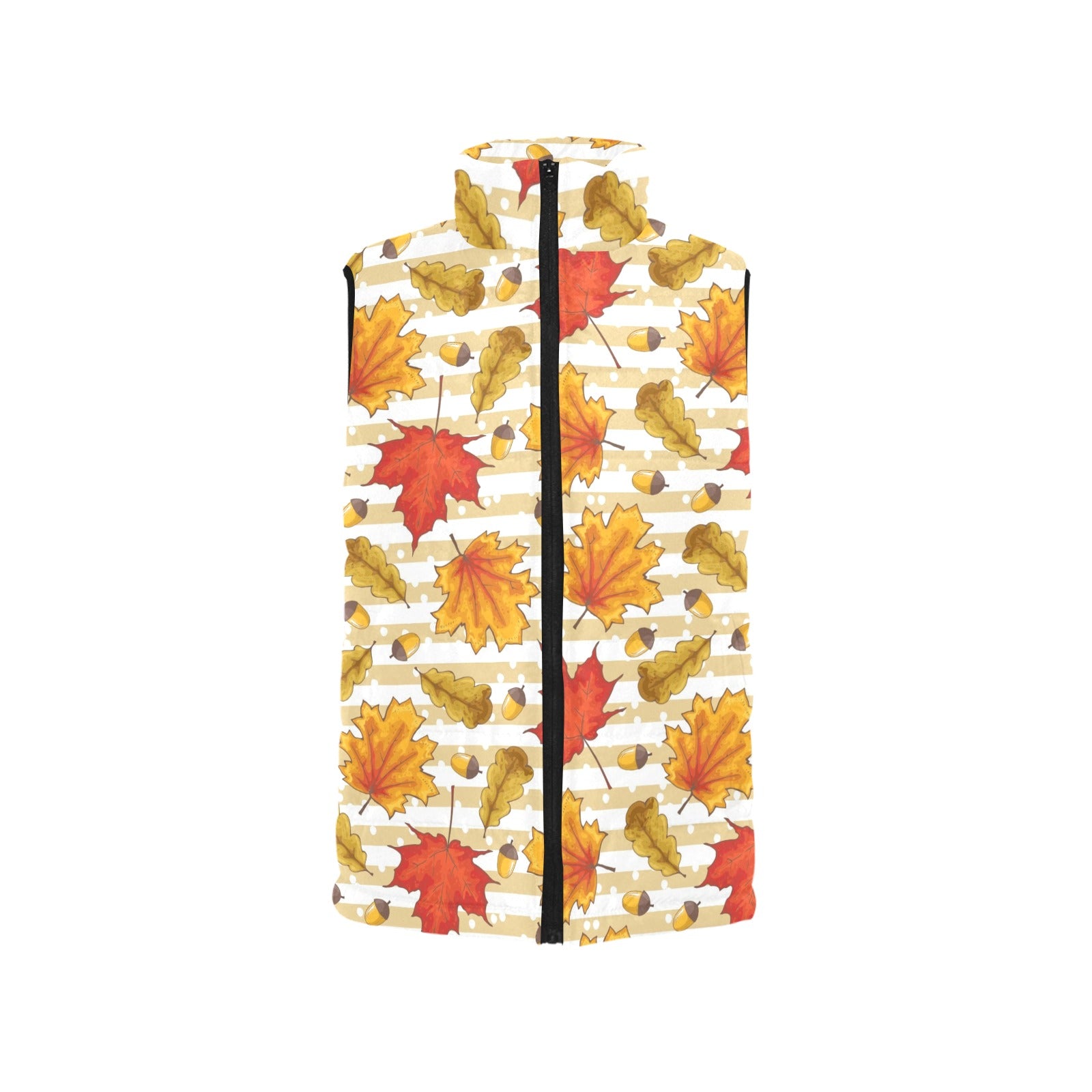 Maple leaf oak leaf acorns beige striped backgroun Men's Padded Vest