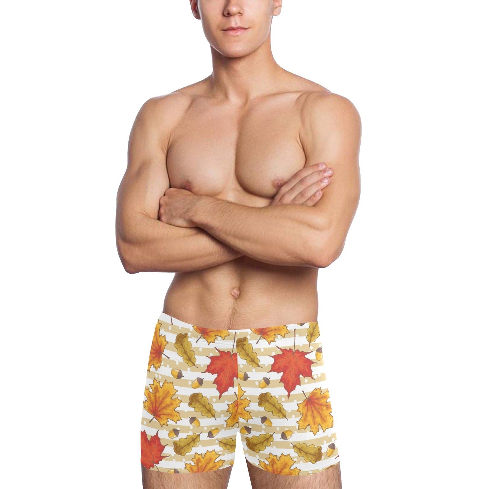 Maple leaf oak leaf acorns beige striped backgroun Men's Swimming Trunks
