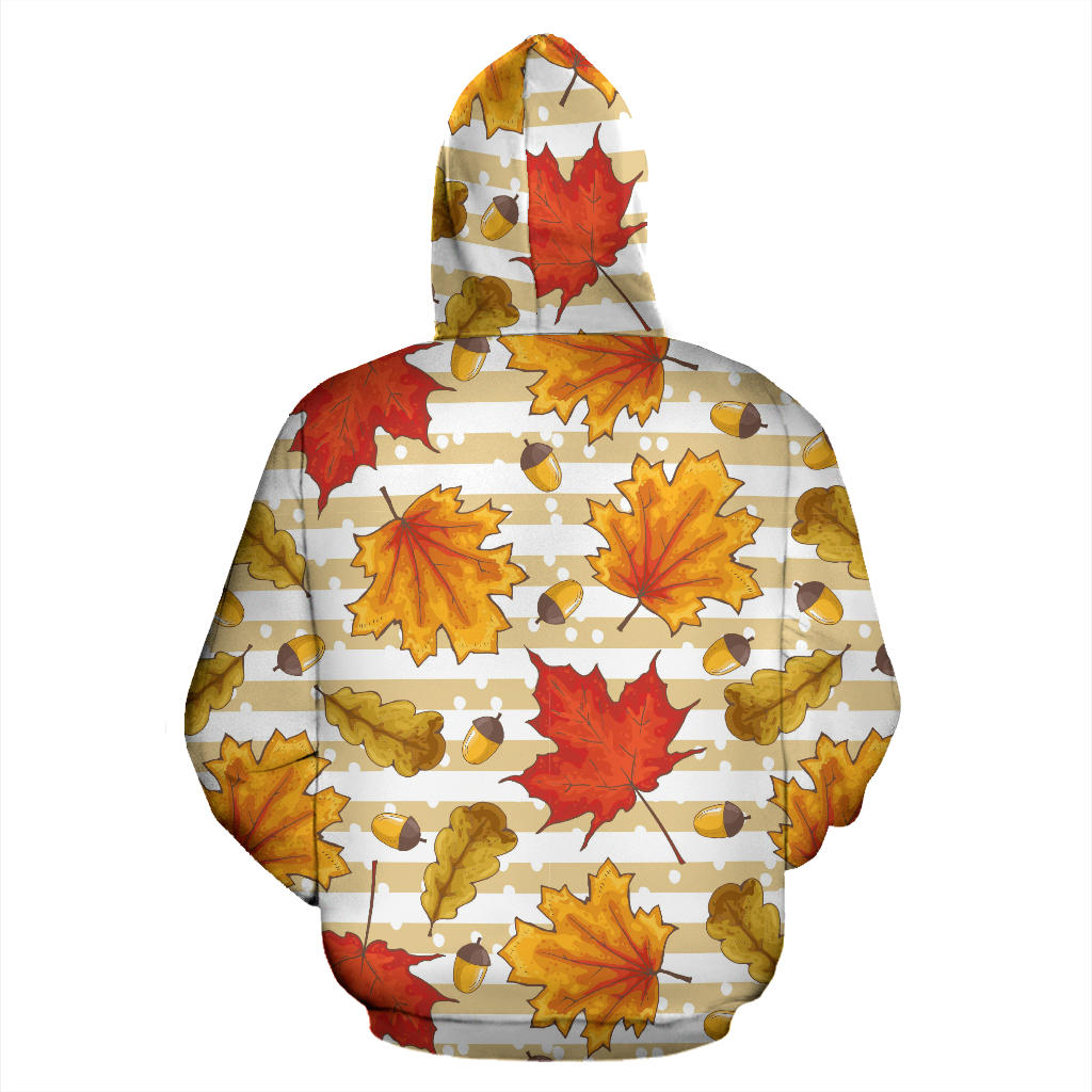 Maple Leaf Oak Leaf Acorns Beige Striped Background Men Women Pullover Hoodie