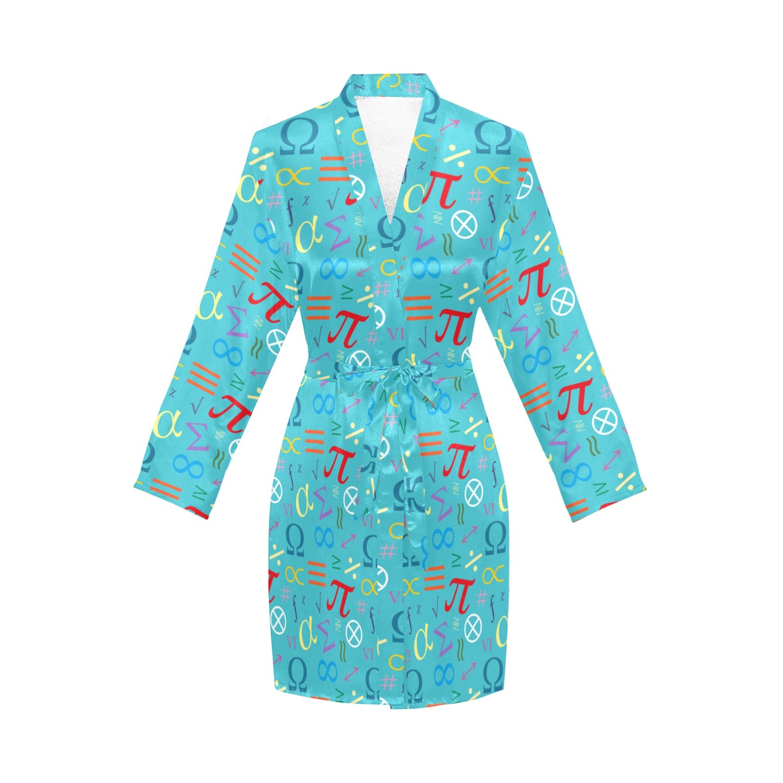 Math Pattern Print Design 02 Women's Long Sleeve Belted Night Robe