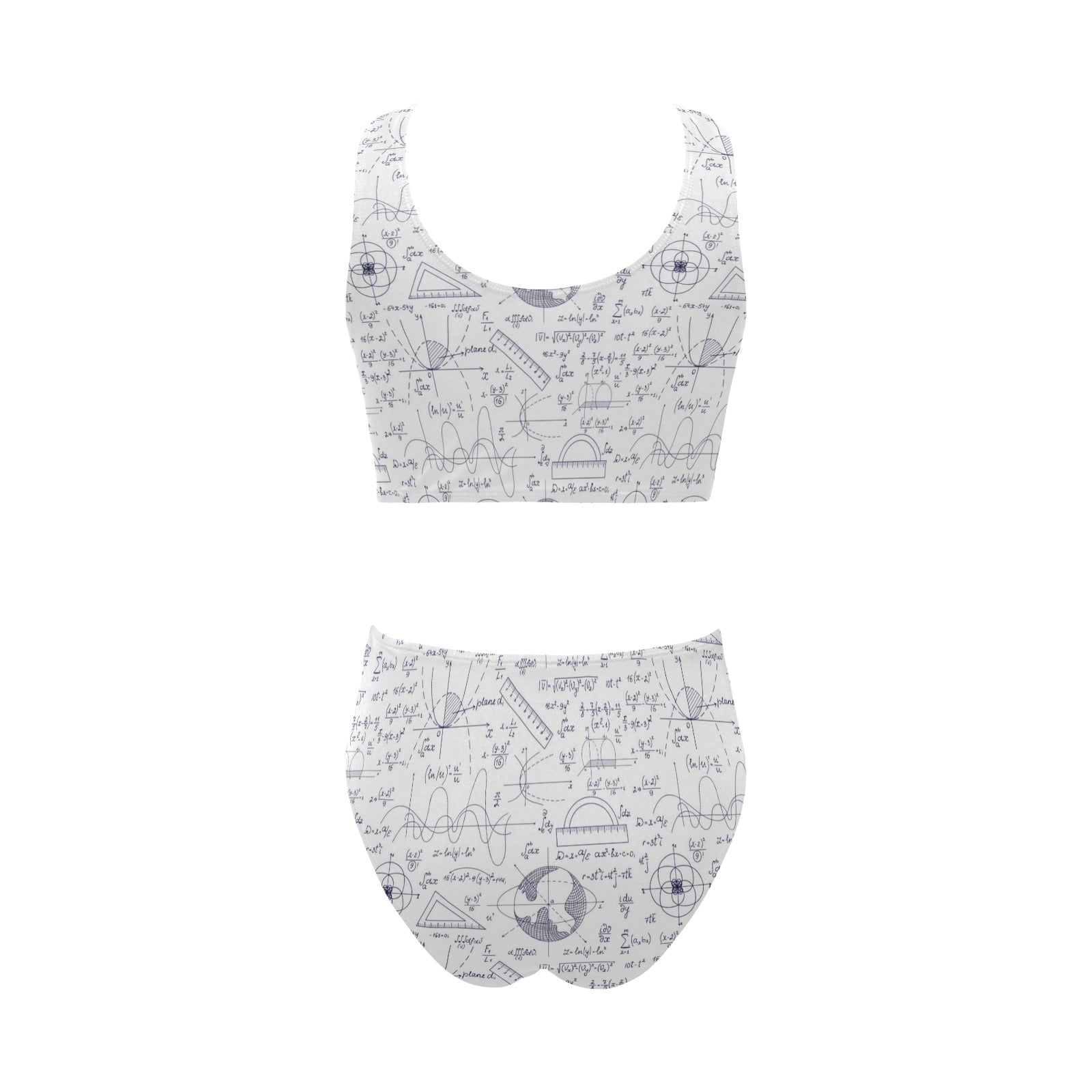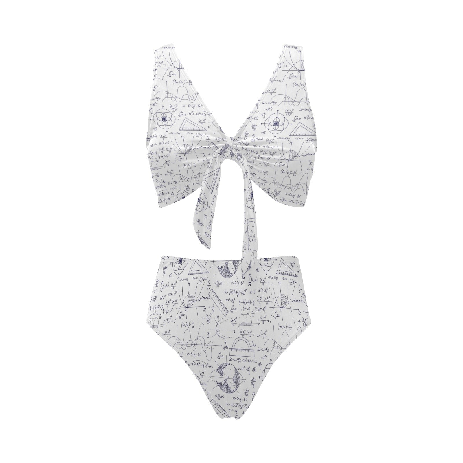 Math Pattern Print Design 03 Chest Bowknot High Waisted Bikini Swimsuit