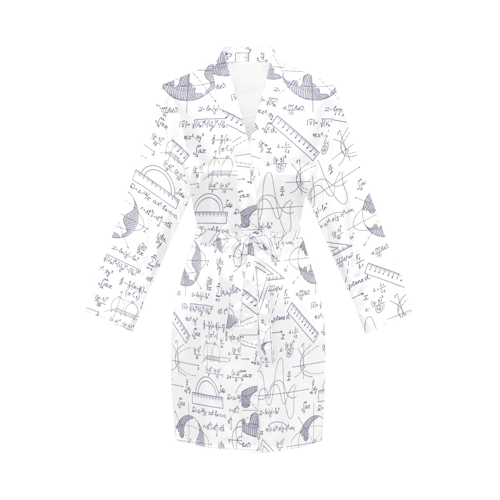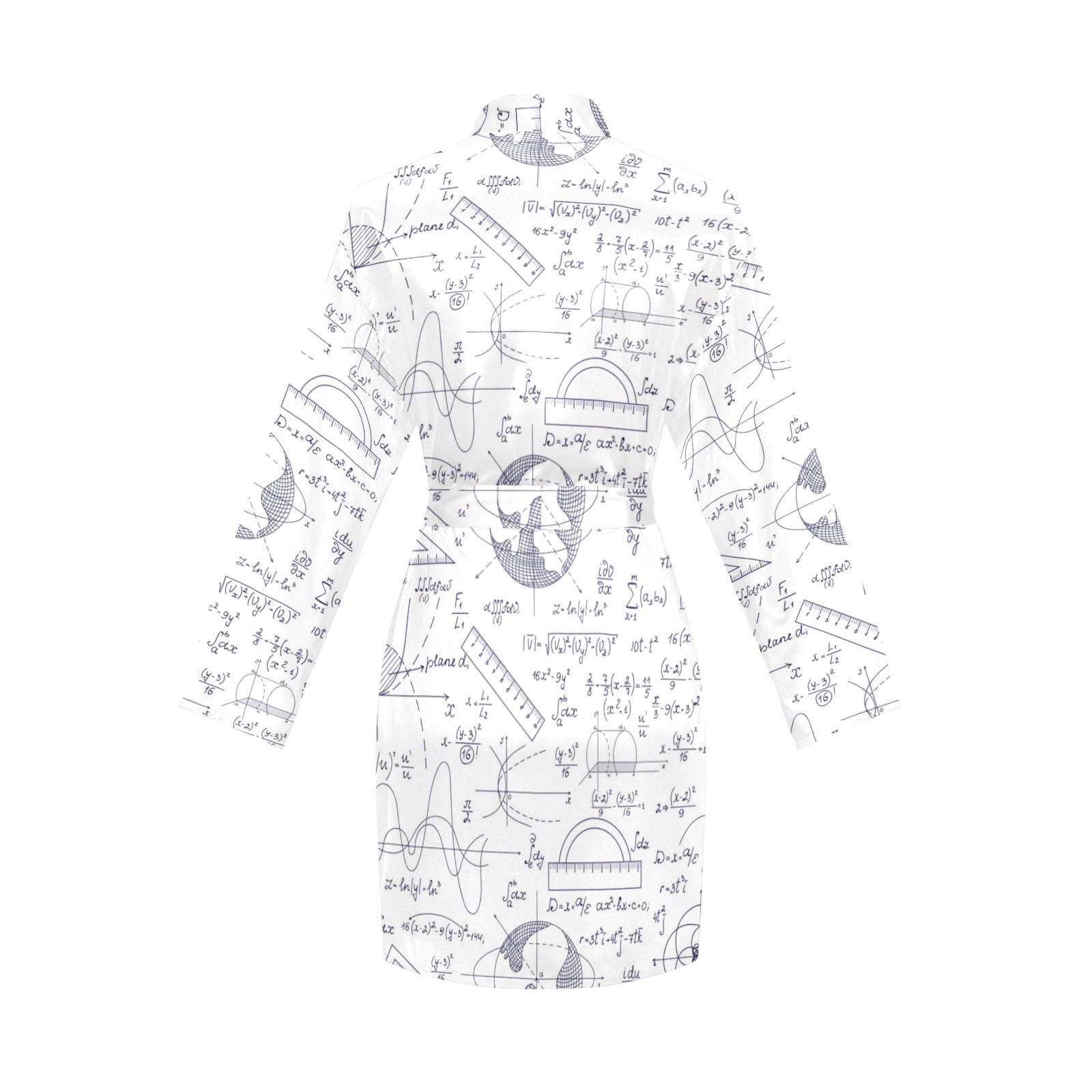 Math Pattern Print Design 03 Women's Long Sleeve Belted Night Robe