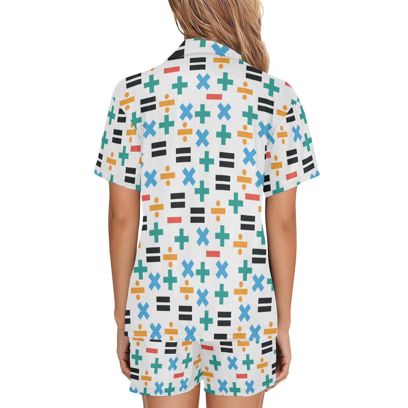 Math Pattern Print Design 05 Women's V-Neck Short Pajama Set