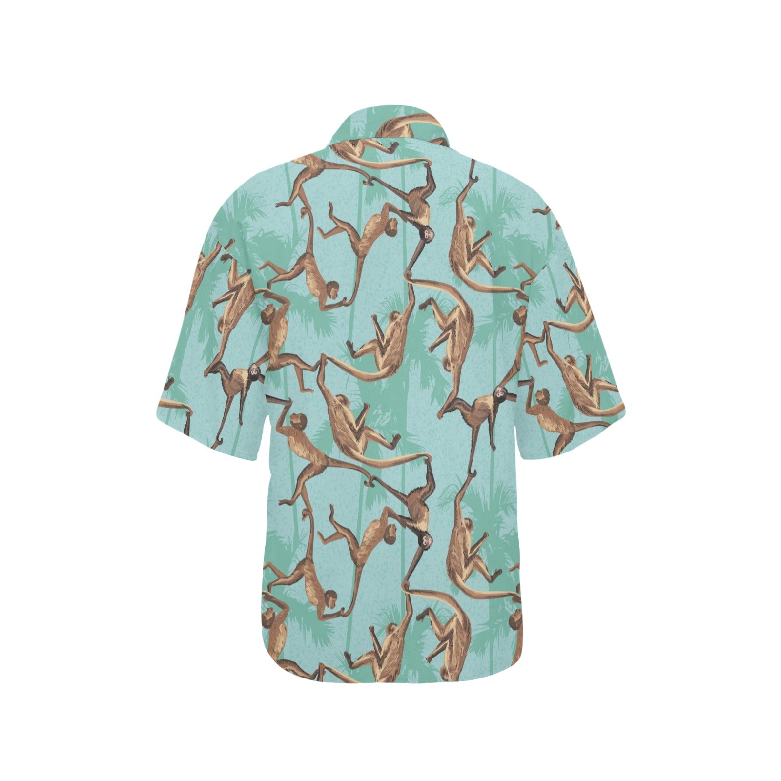 Monkey Palm tree background Women's All Over Print Hawaiian Shirt