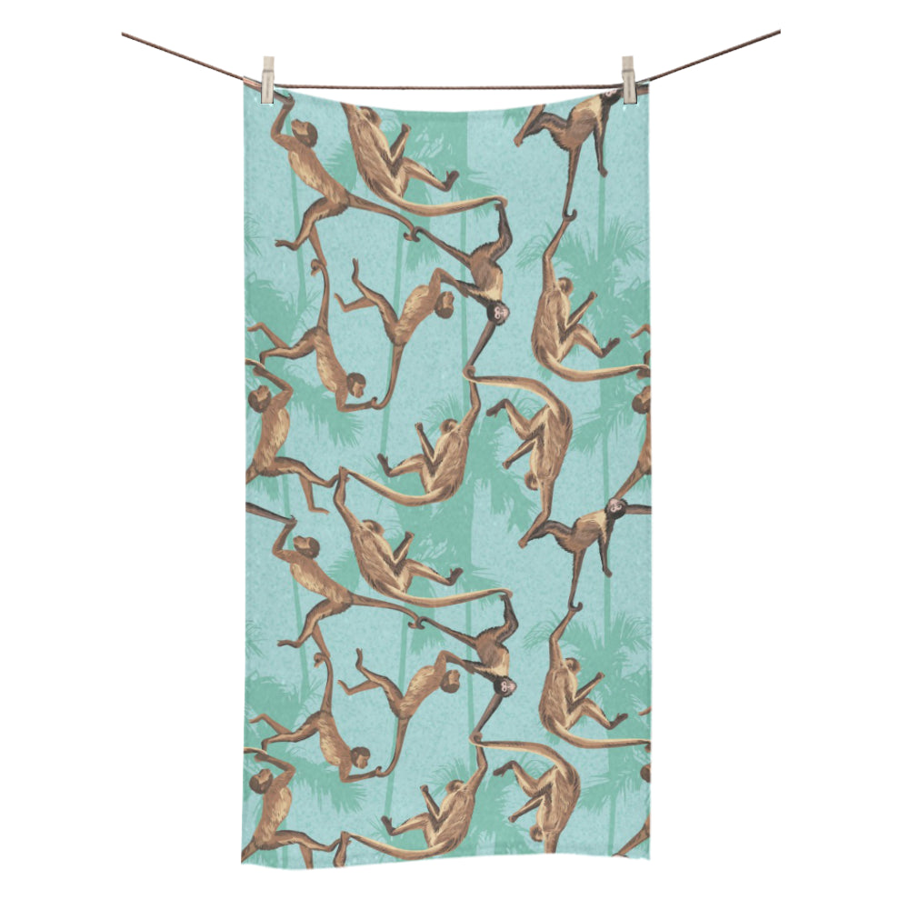 Monkey Palm tree background Bath Towel 30"x56" is a uniqued design and limited item. It made to order, hand printed, and sewn with love in our factory.