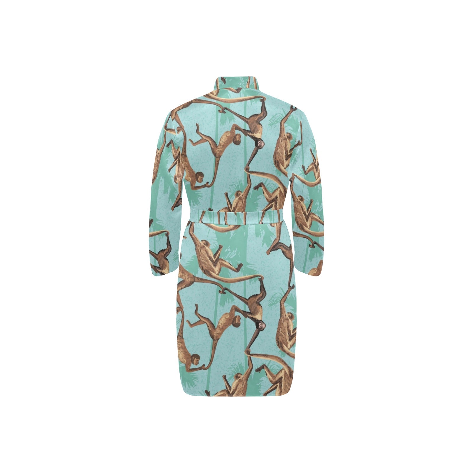 Monkey Palm tree background Men's Long Sleeve Belted Night Robe