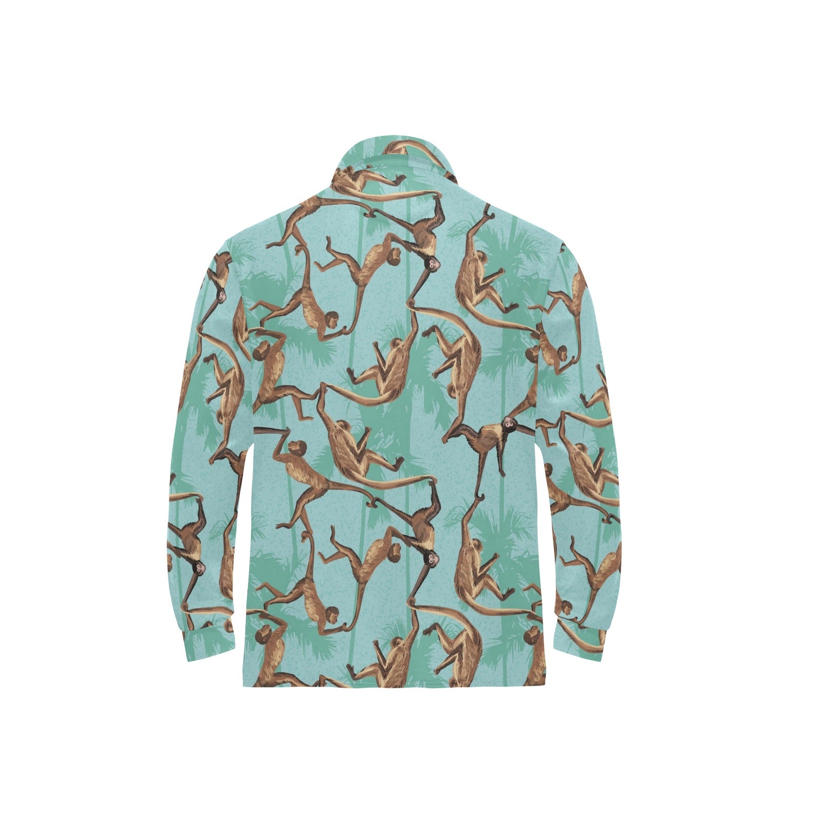 Monkey Palm tree background Men's Long Sleeve Polo Shirt