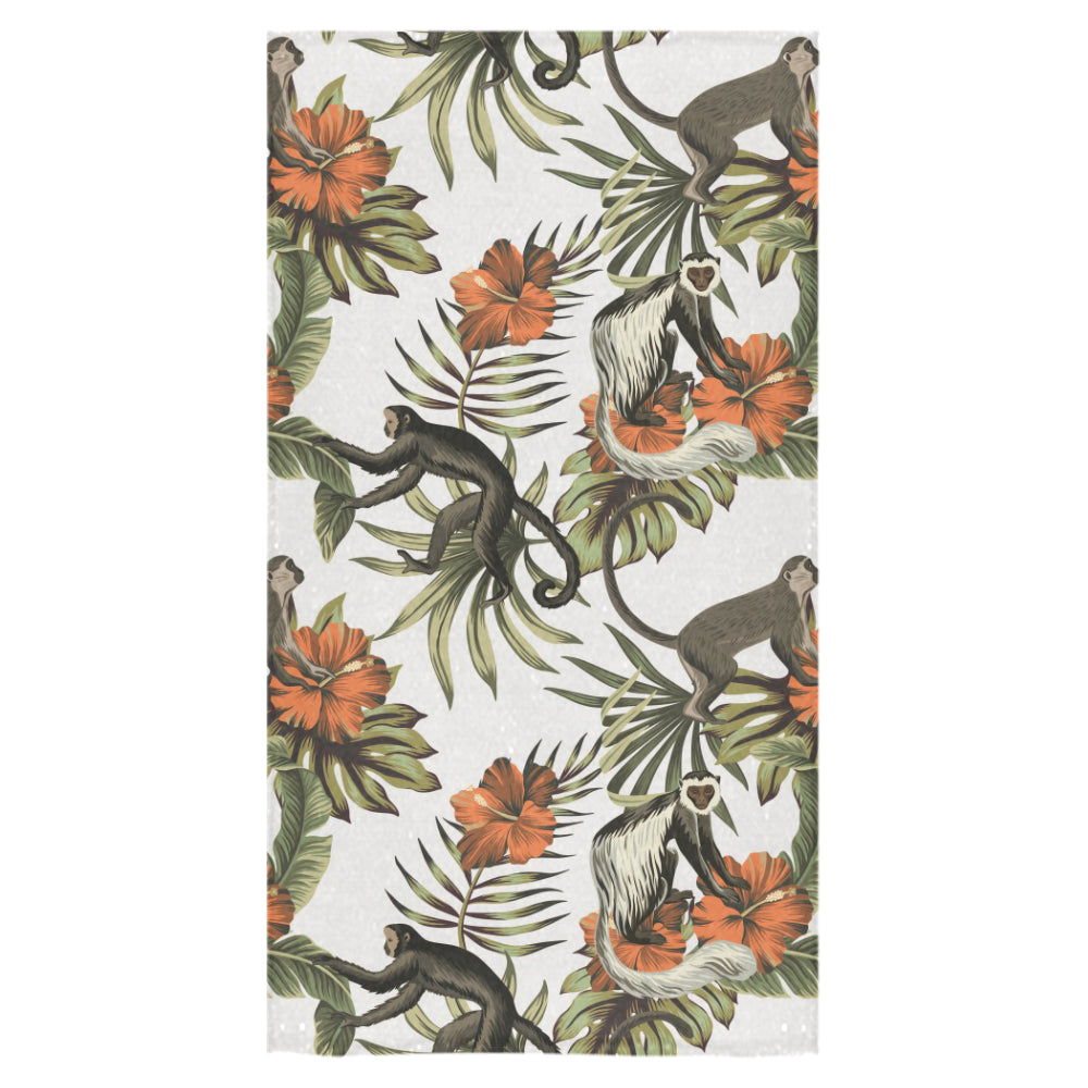 Monkey red hibiscus flower palm leaves floral patt Bath Towel