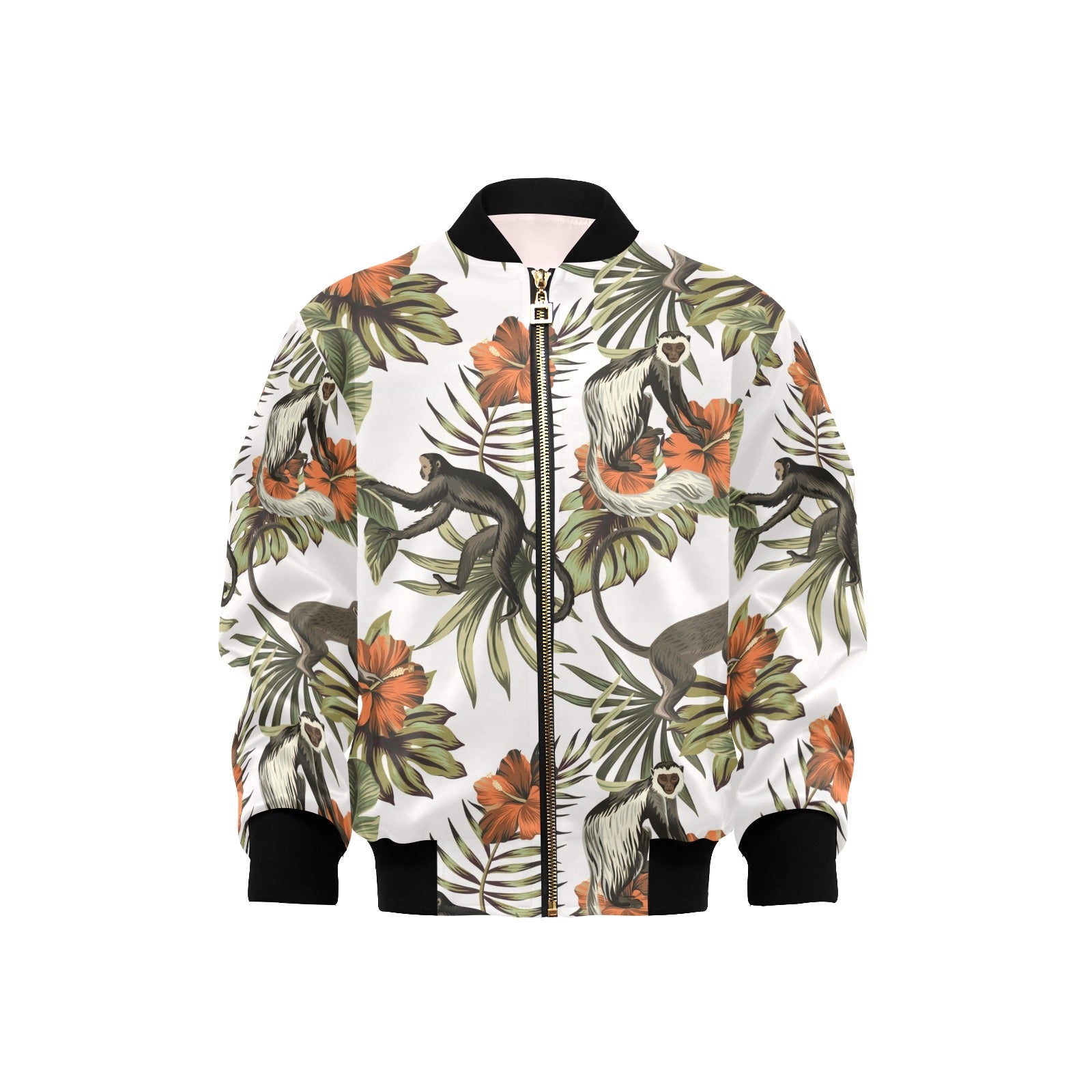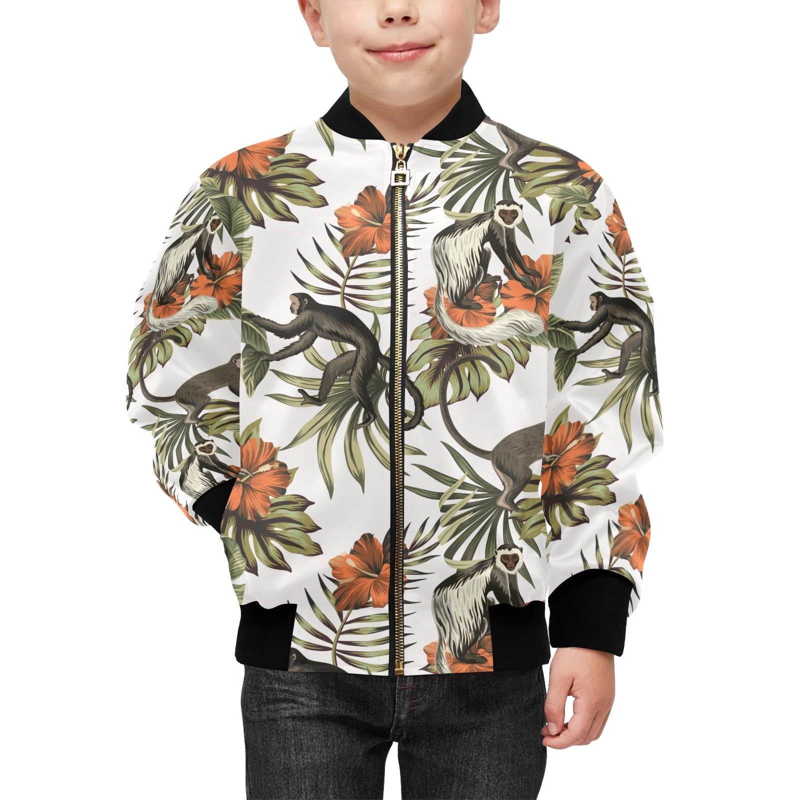 Monkey red hibiscus flower palm leaves floral patt Kids' Boys' Girls' Bomber Jacket