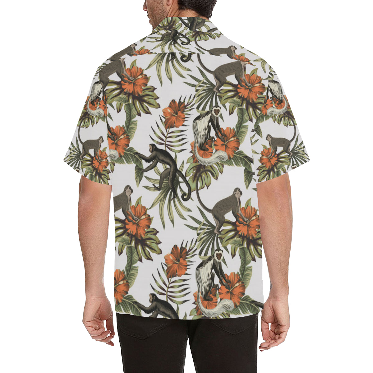 Monkey red hibiscus flower palm leaves floral patt Men's All Over Print Hawaiian Shirt is a uniqued design and limited item. It made to order, hand printed, and sewn with love in our factory.