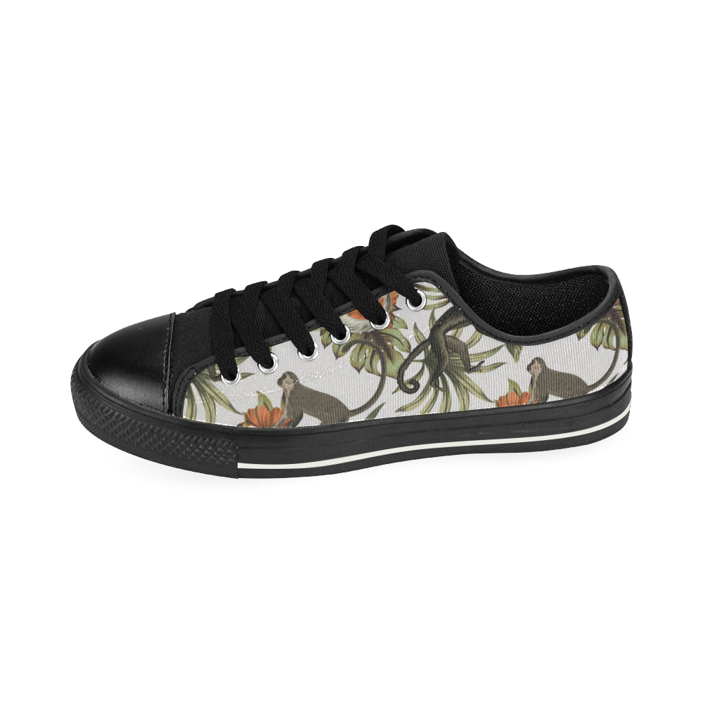 Monkey red hibiscus flower palm leaves floral patt Men's Low Top Canvas Shoes Black