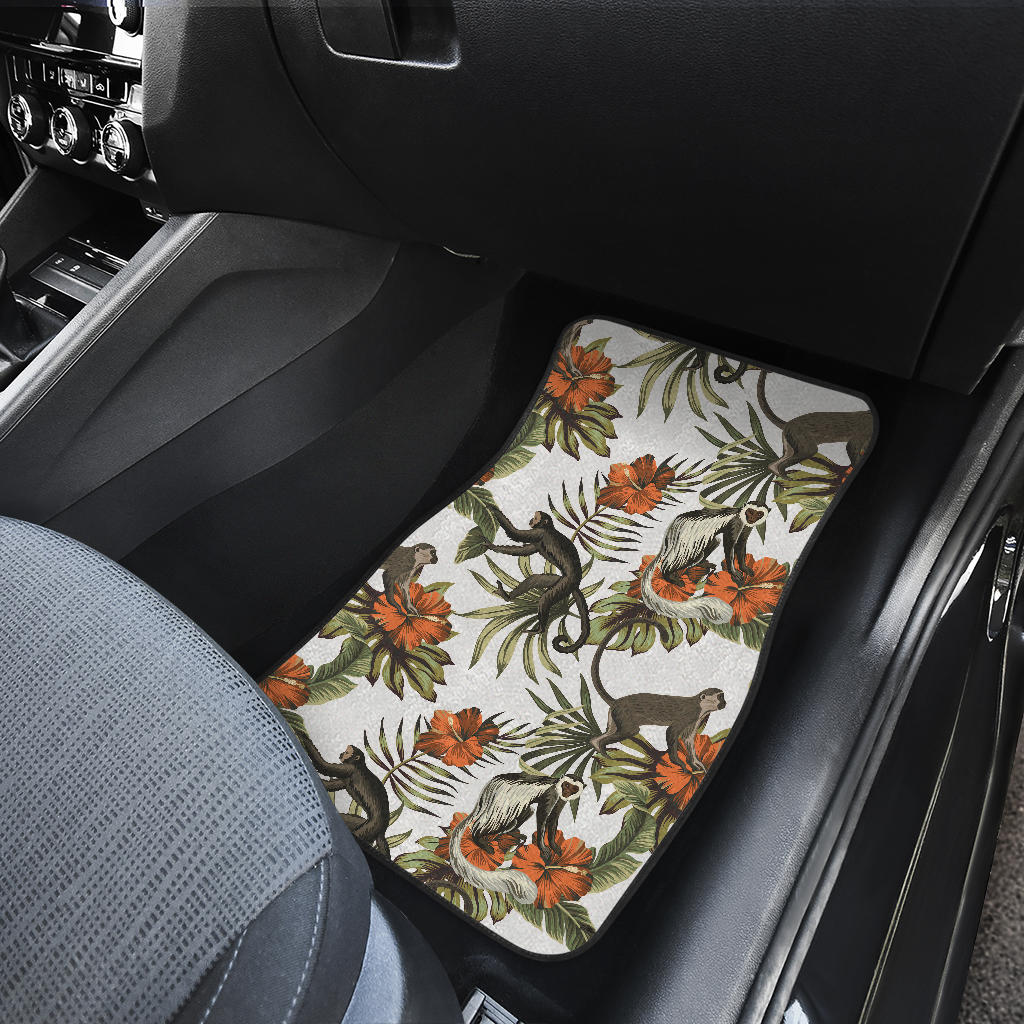 Monkey Red Hibiscus Flower Palm Leaves Floral Pattern Front Car Mats