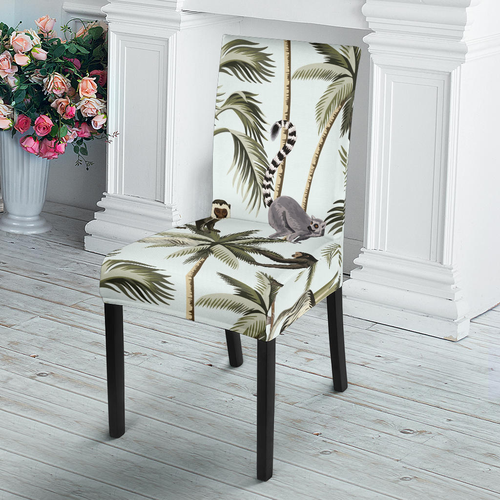 Monkey Sloth Lemur Palm Trees Pattern Dining Chair Slipcover