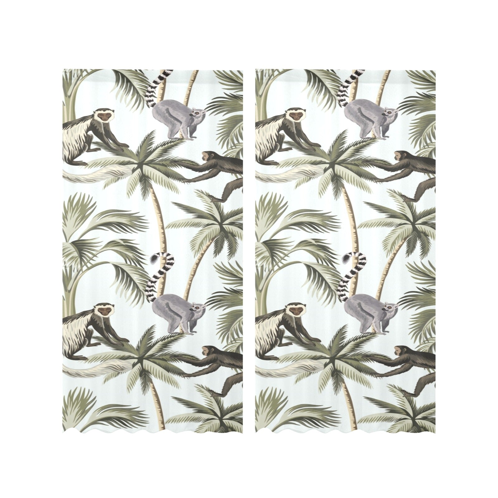 Monkey sloth lemur palm trees pattern Gauze Curtain