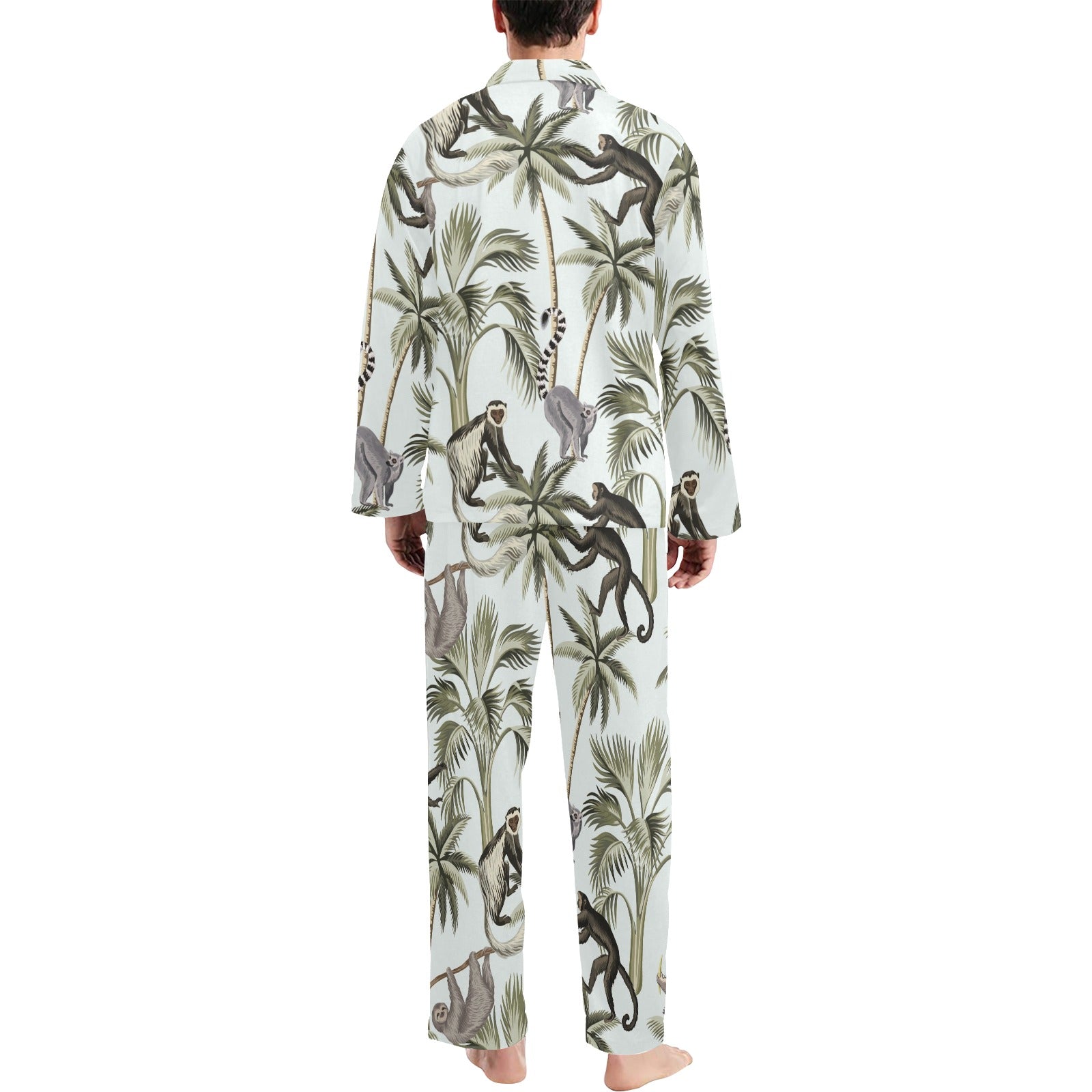 Monkey sloth lemur palm trees pattern Men's Long Pajama Set