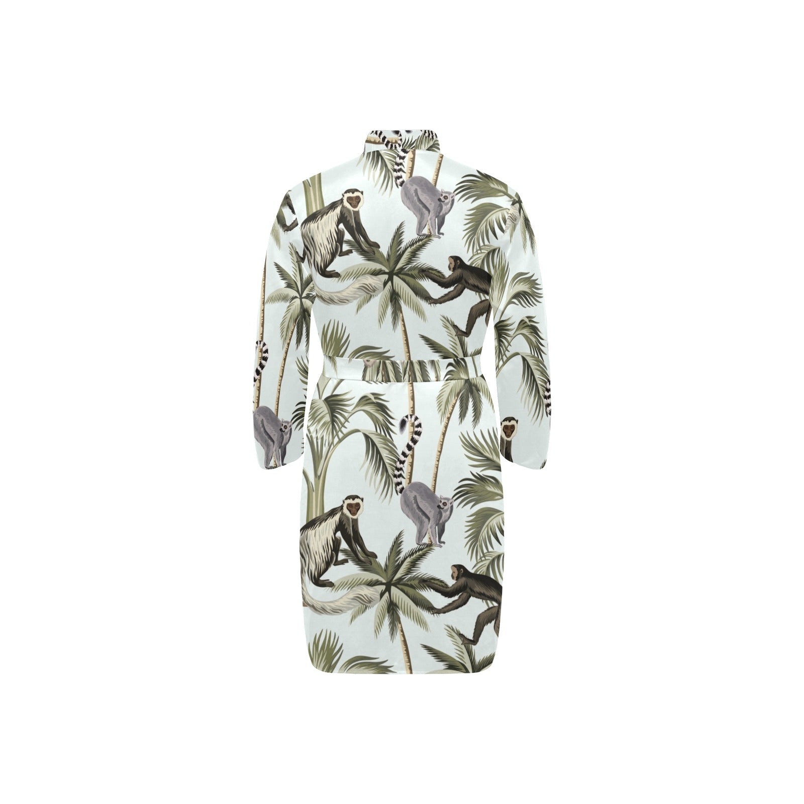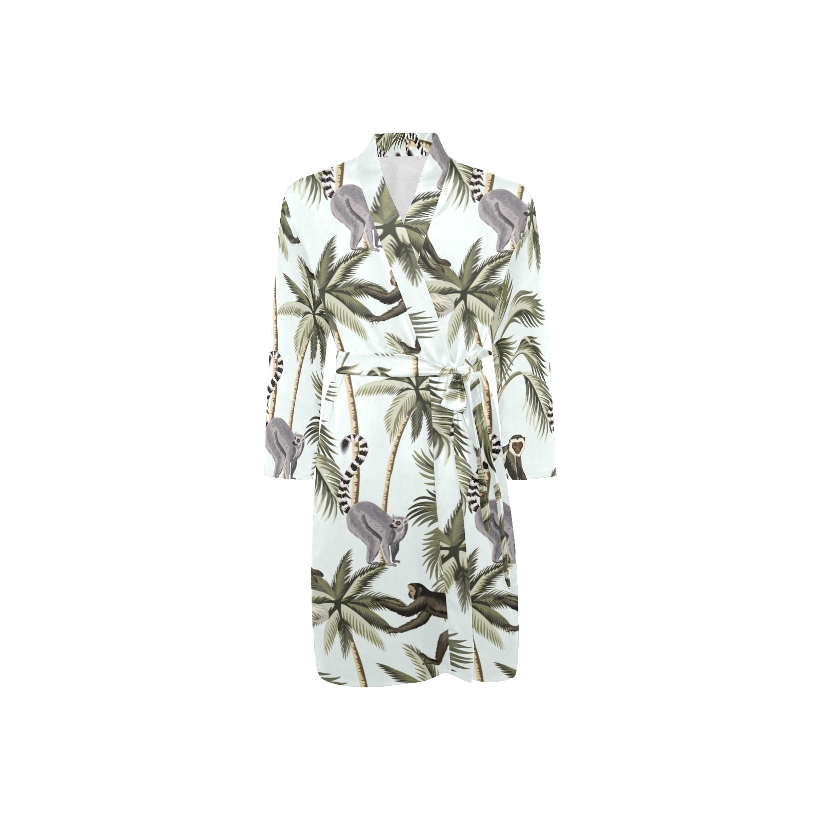 Monkey sloth lemur palm trees pattern Men's Long Sleeve Belted Night Robe
