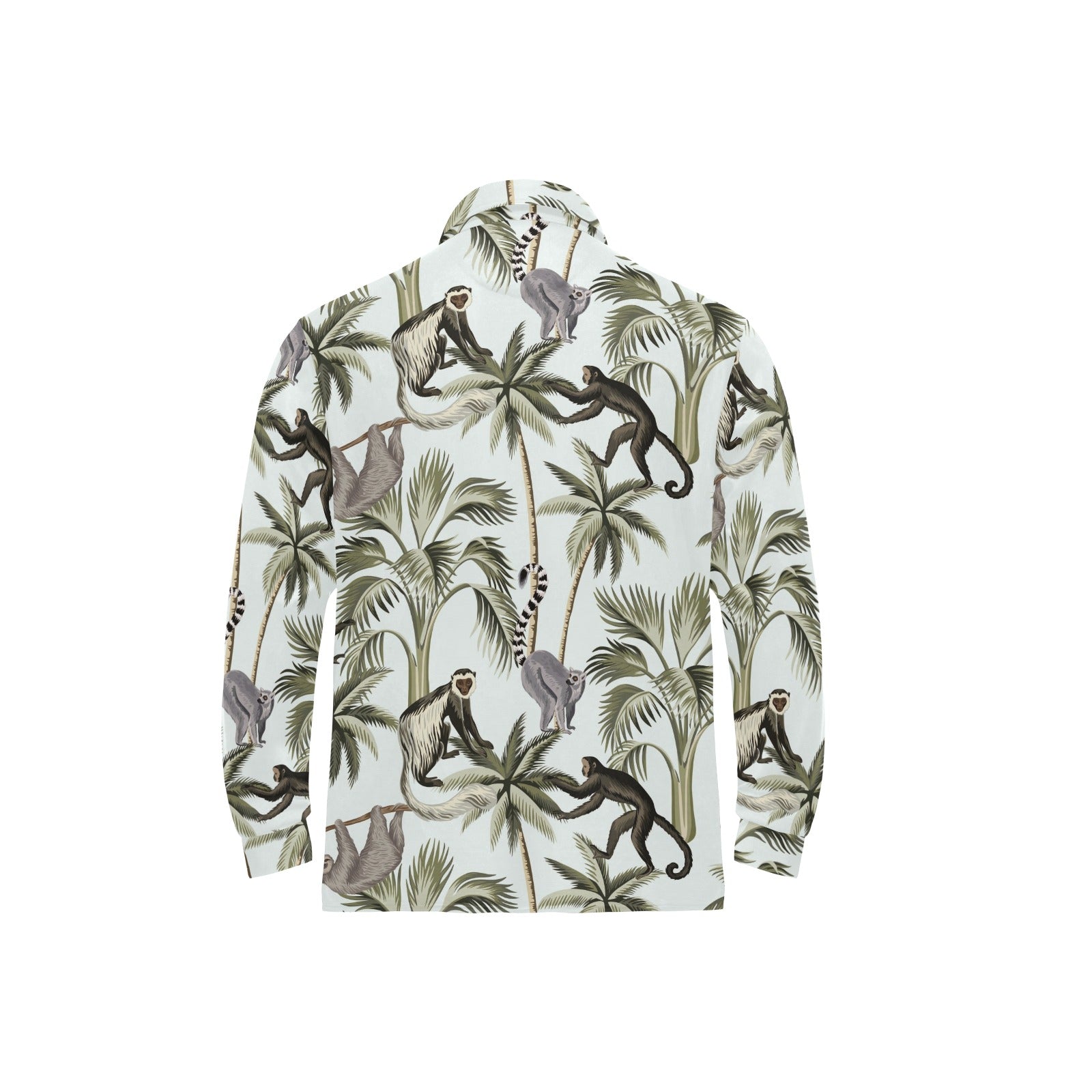 Monkey sloth lemur palm trees pattern Men's Long Sleeve Polo Shirt