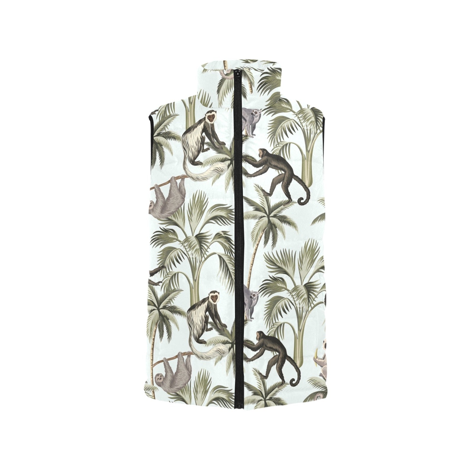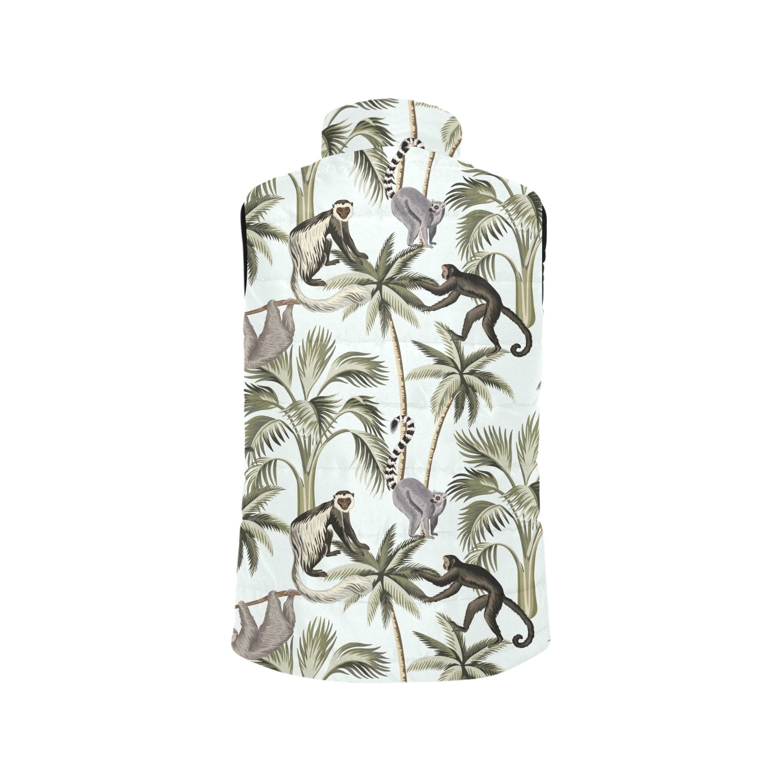 Monkey sloth lemur palm trees pattern Men's Padded Vest