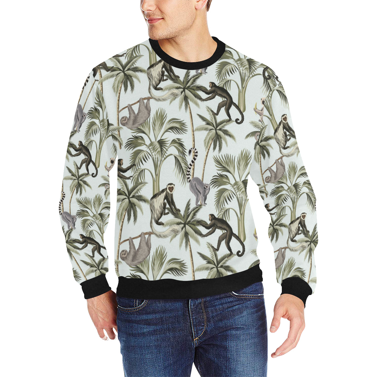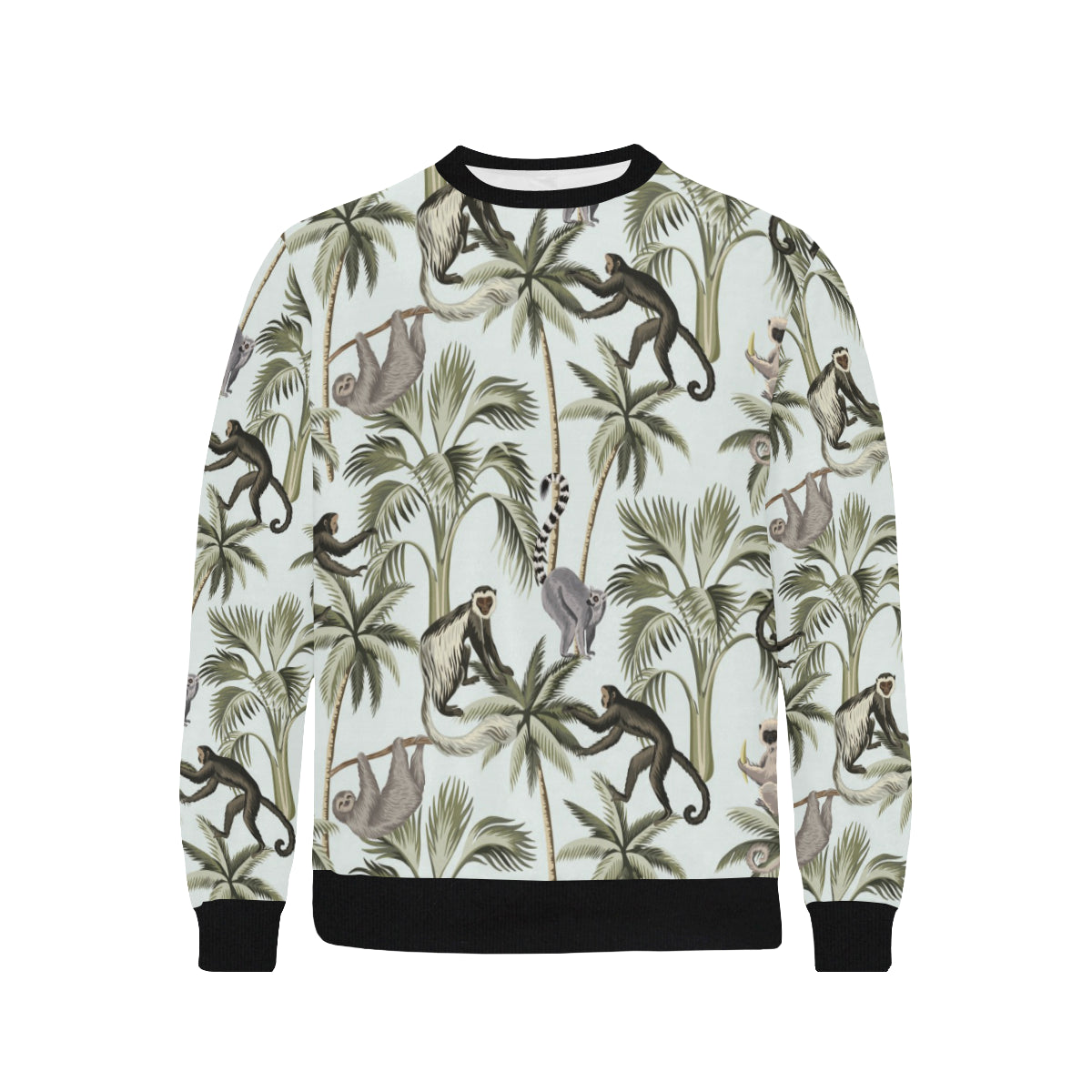Monkey sloth lemur palm trees pattern Men's Crew Neck Sweatshirt is a uniqued design and limited item. It made to order, hand printed, and sewn with love in our factory.