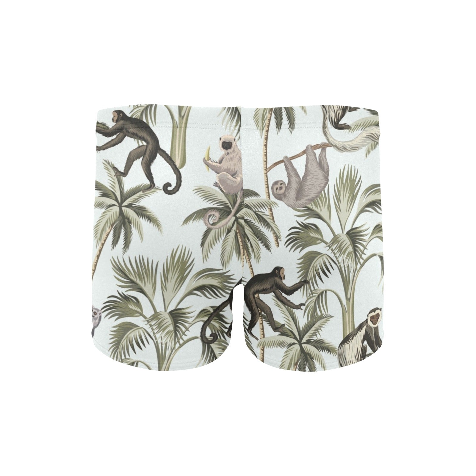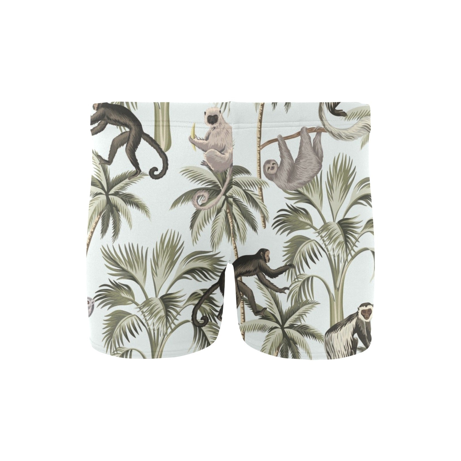 Monkey sloth lemur palm trees pattern Men's Swimming Trunks