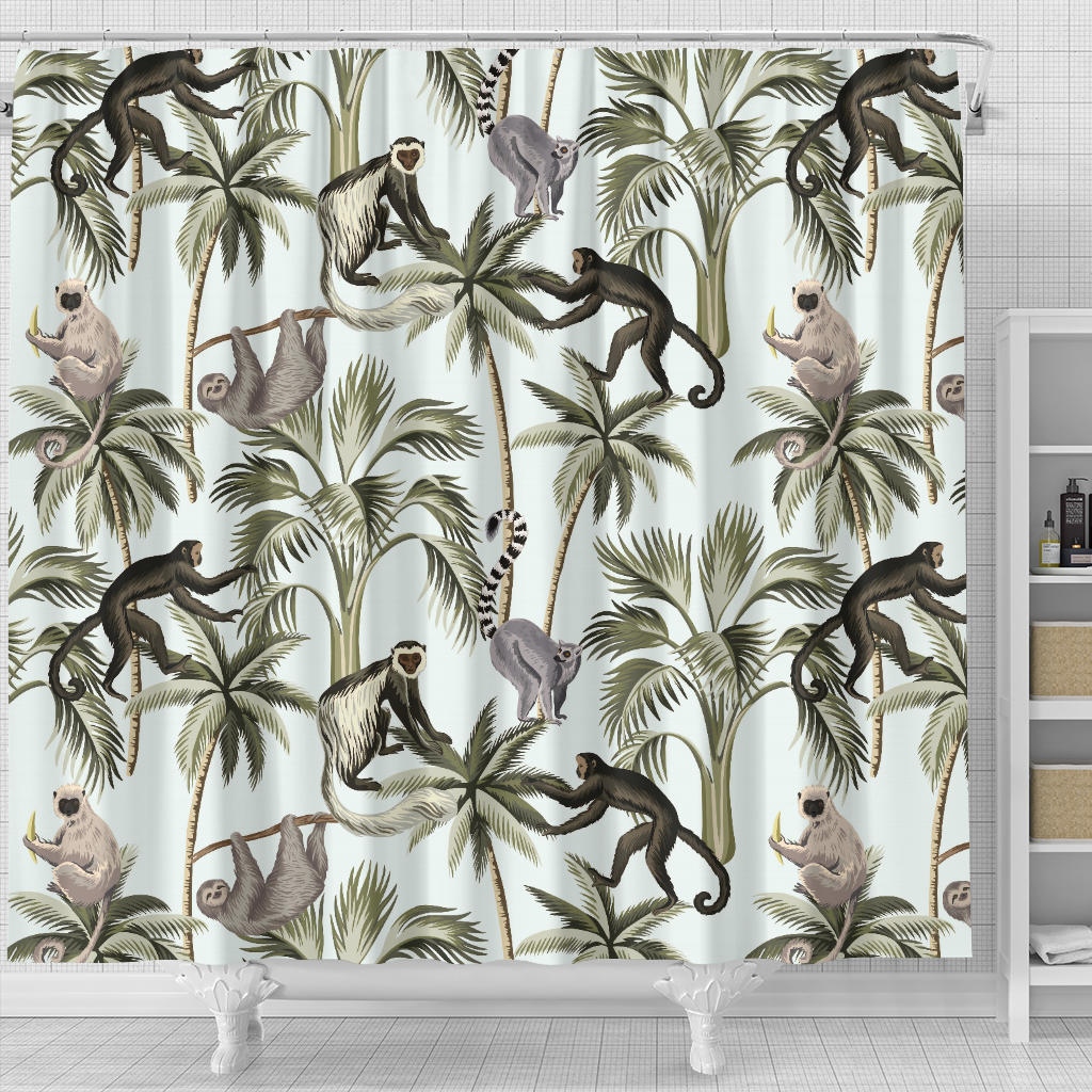 Monkey Sloth Lemur Palm Trees Pattern Shower Curtain Fulfilled In US