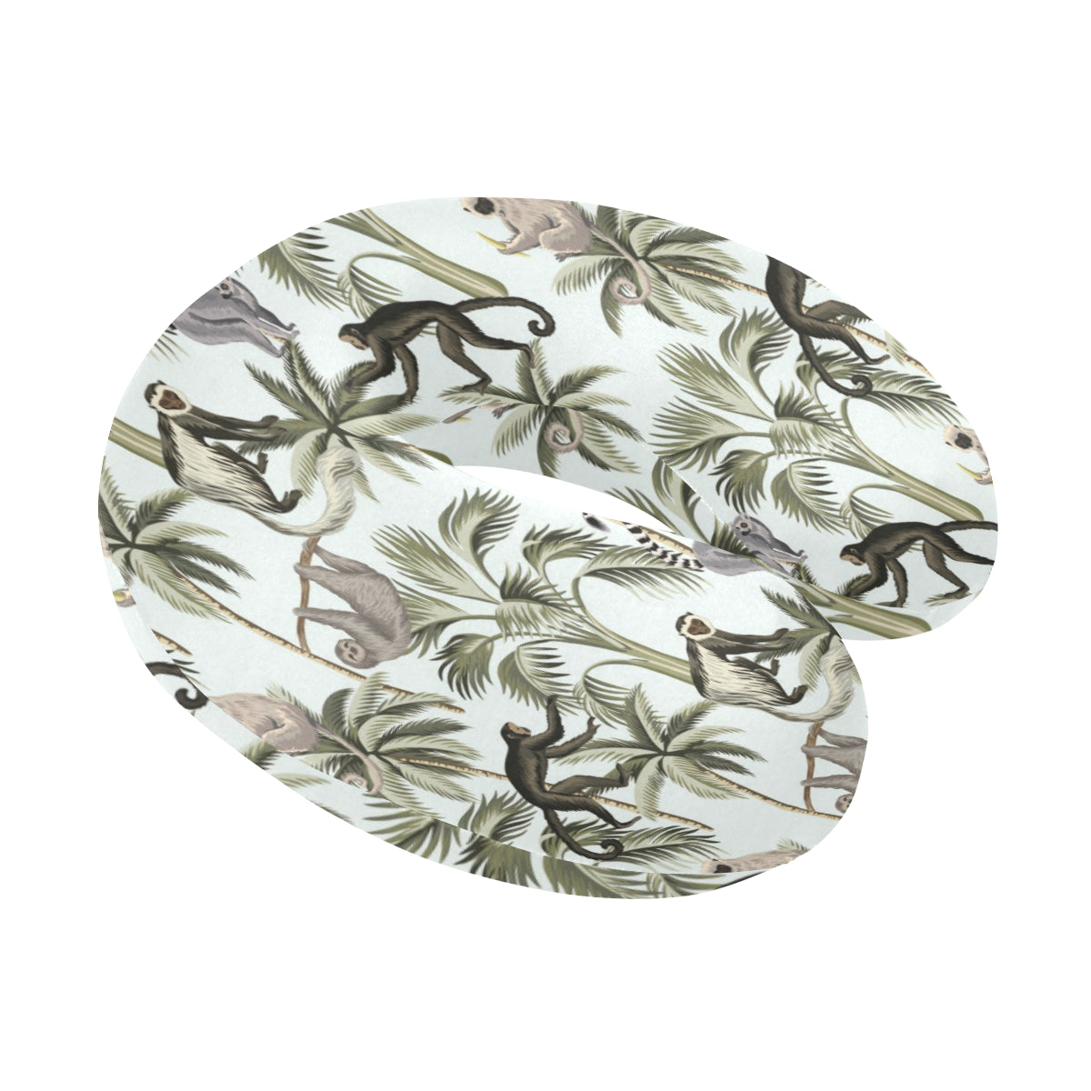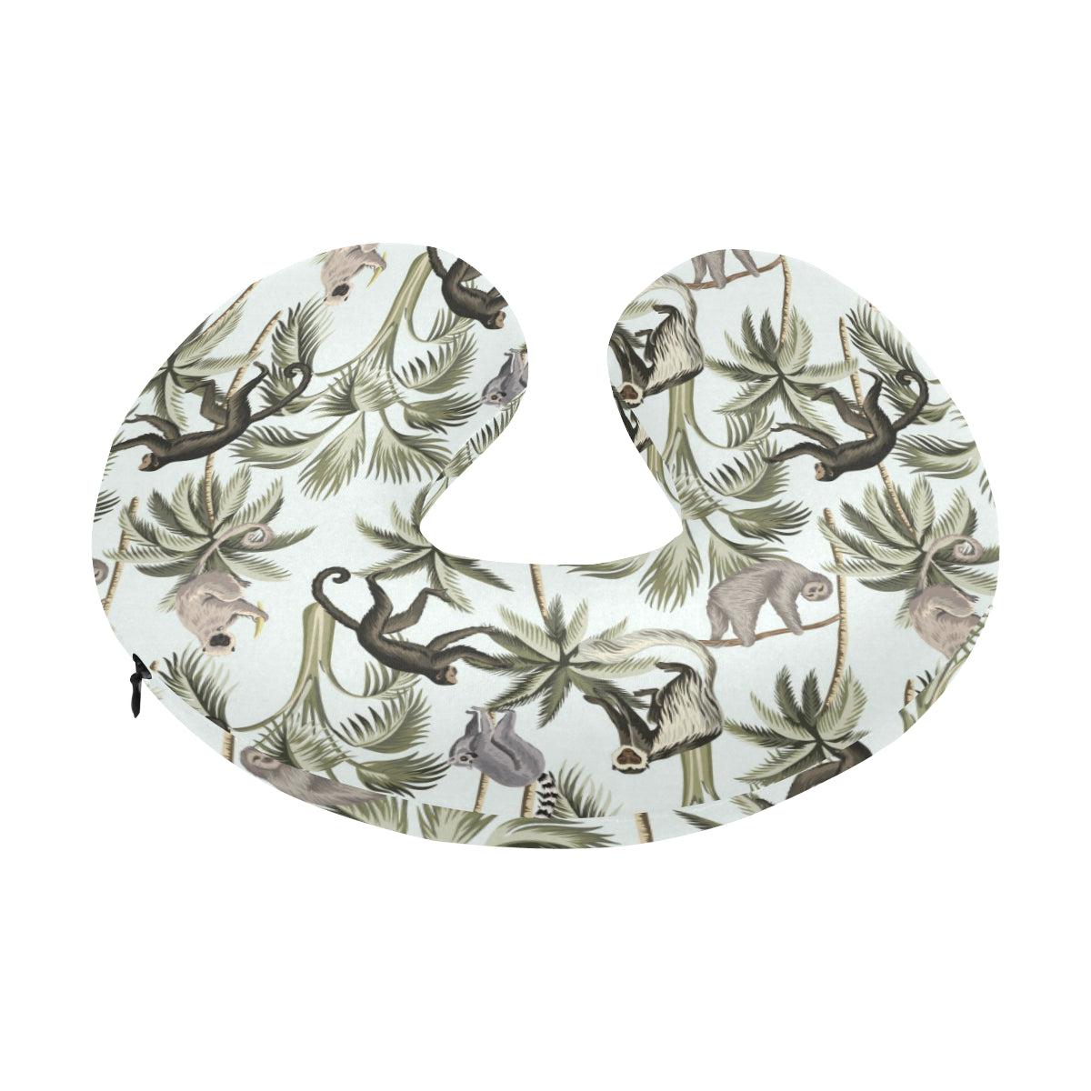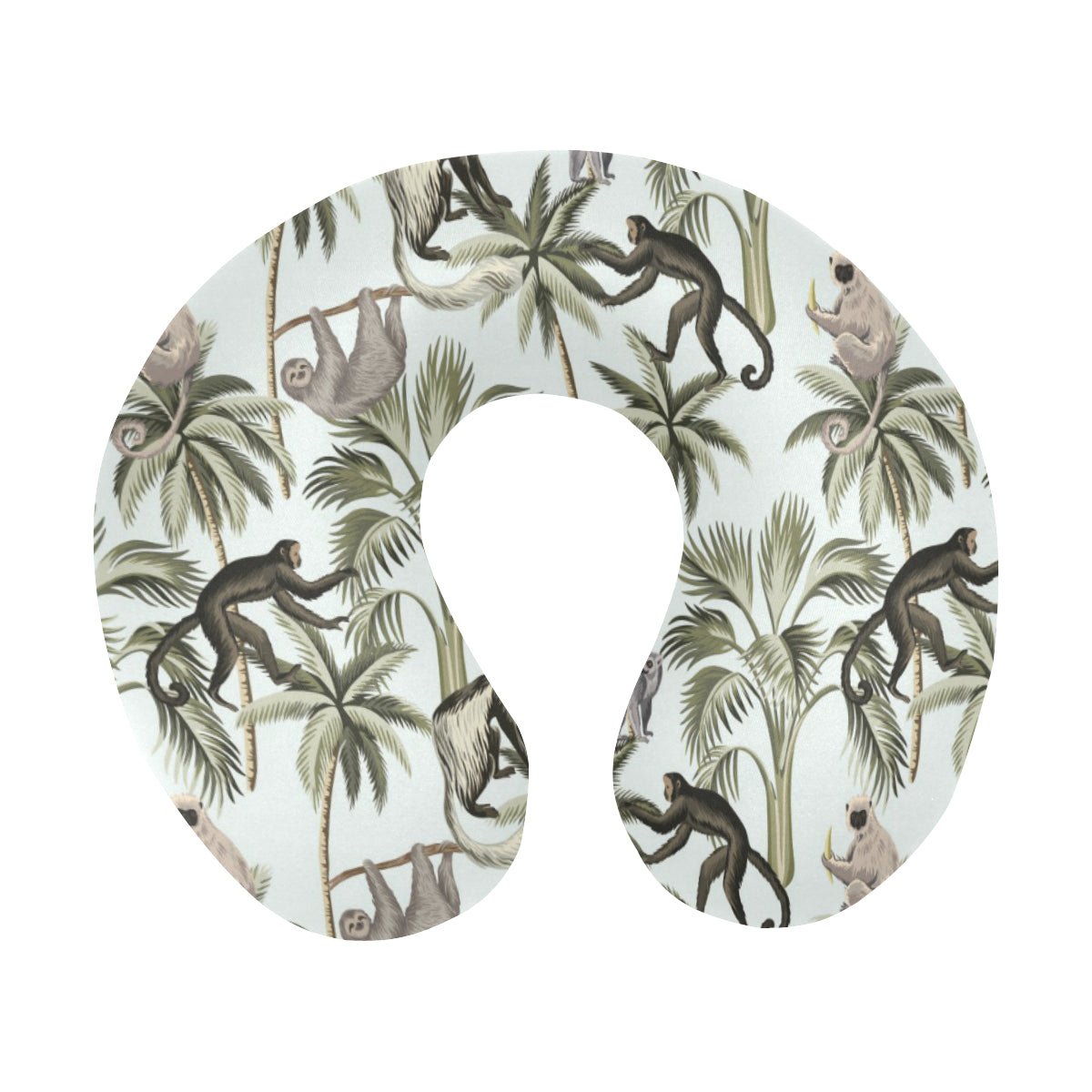 Monkey sloth lemur palm trees pattern U-Shaped Travel Neck Pillow