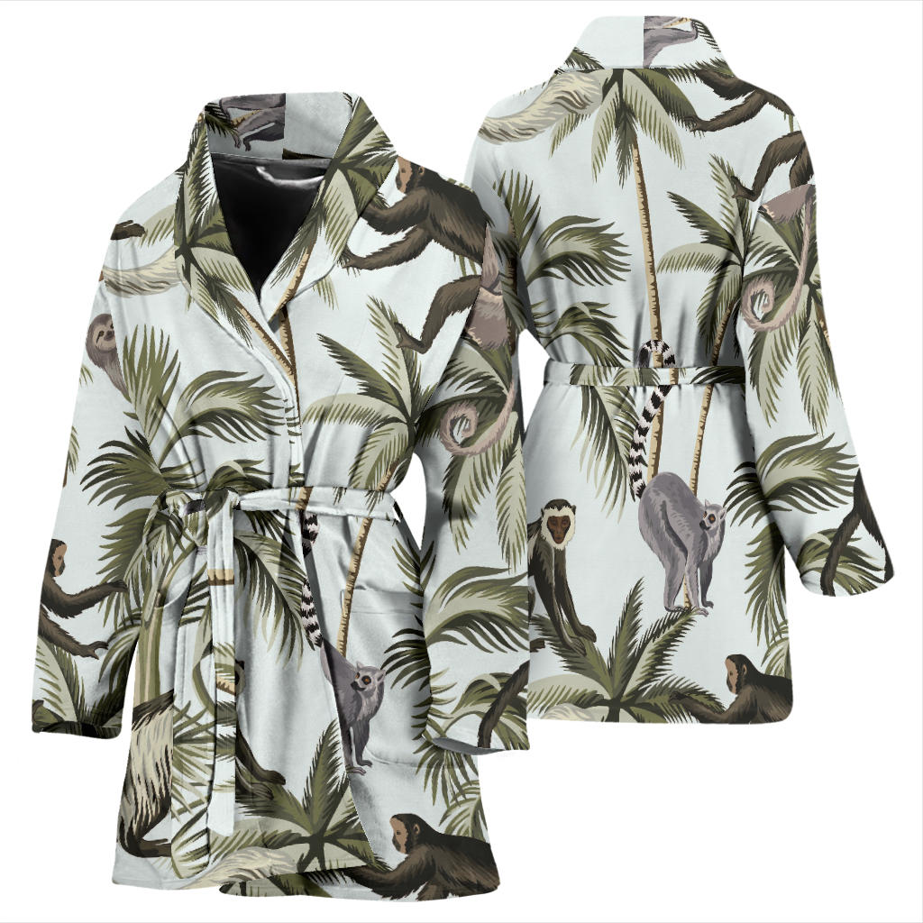 Monkey Sloth Lemur Palm Trees Pattern Women'S Bathrobe