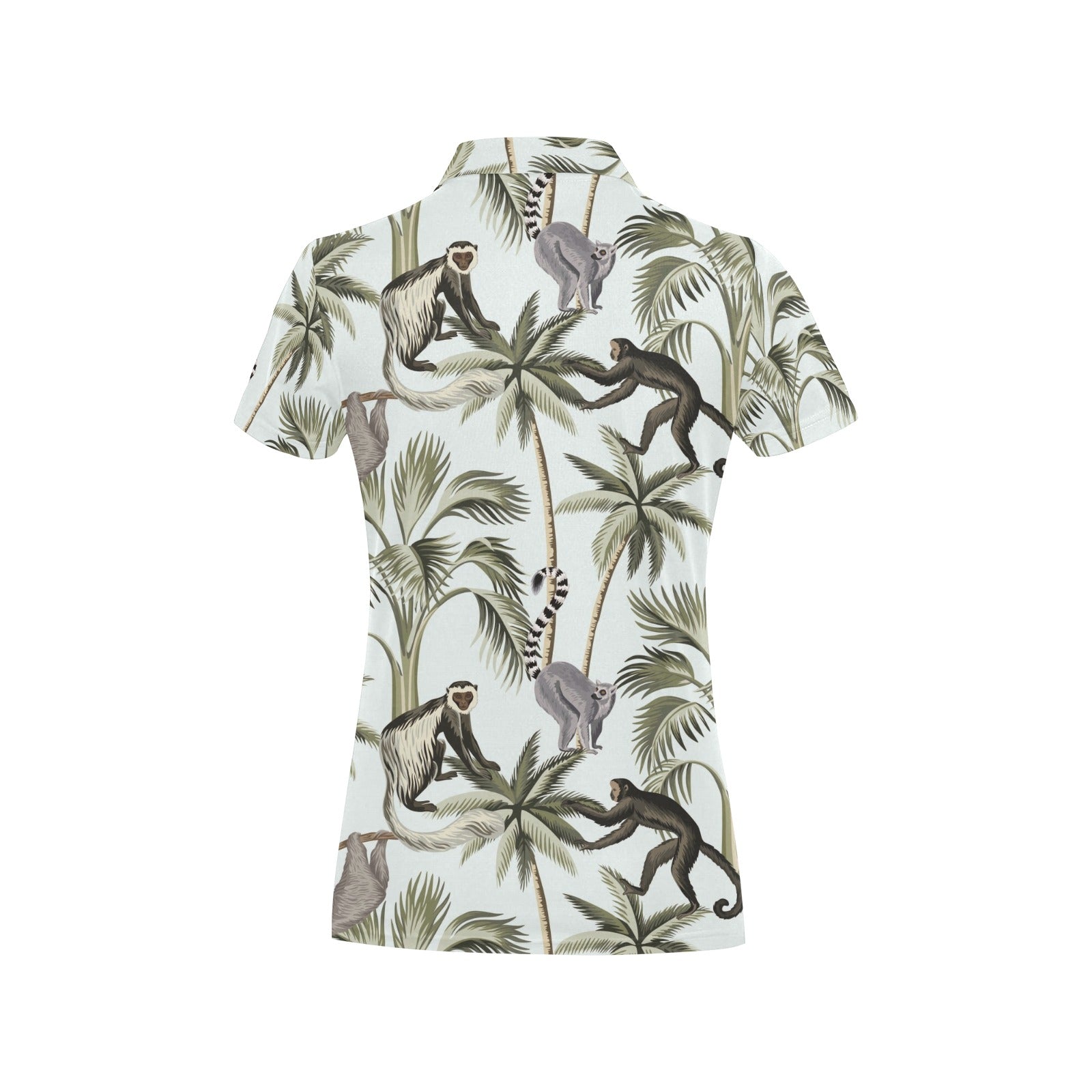 Monkey sloth lemur palm trees pattern Women's All Over Print Polo Shirt