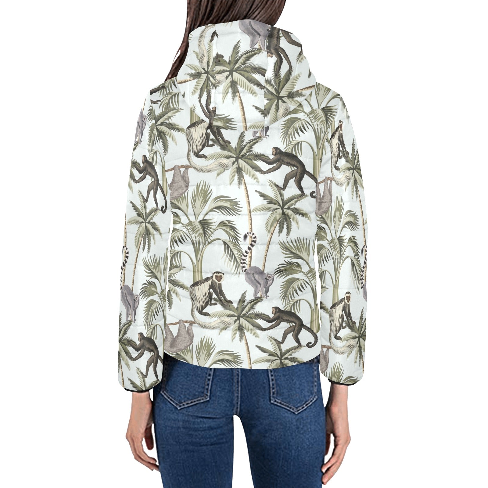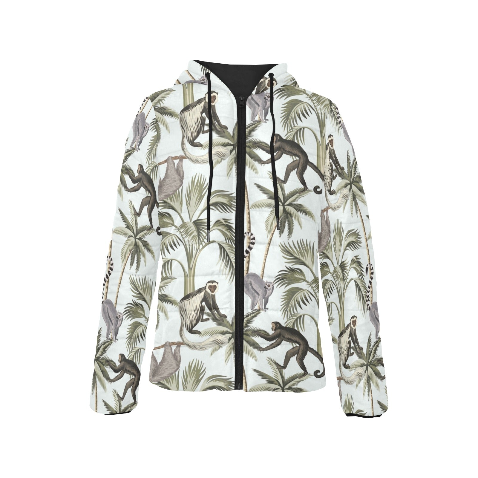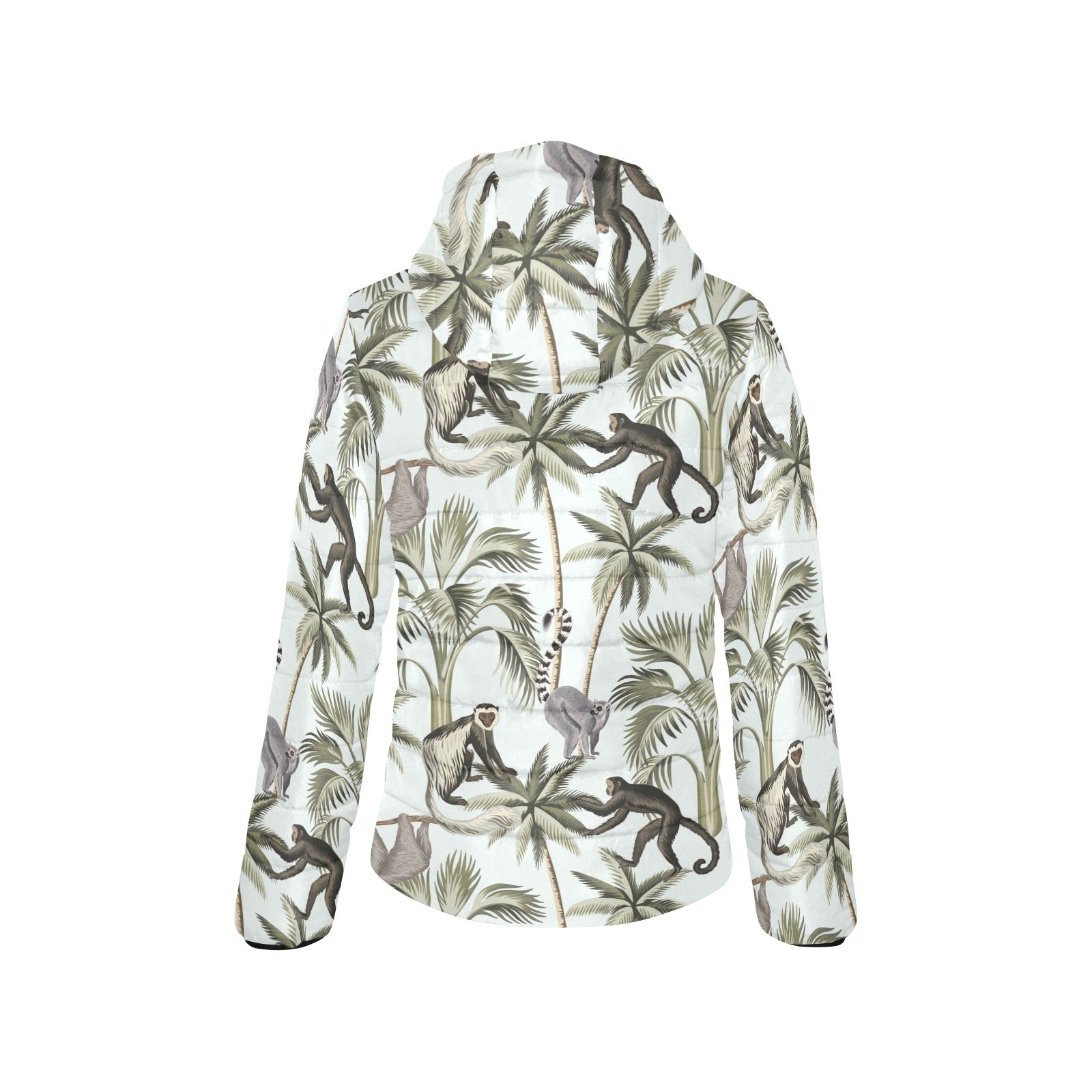 Monkey sloth lemur palm trees pattern Women's Padded Hooded Jacket