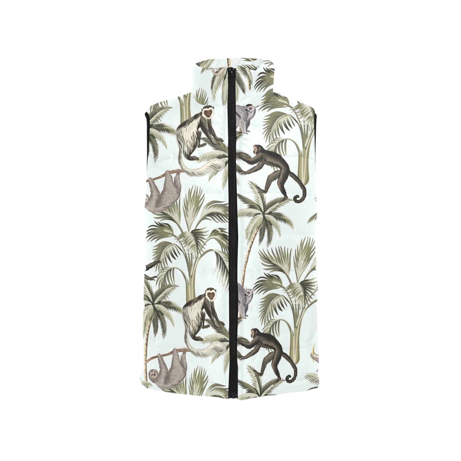 Monkey sloth lemur palm trees pattern Women's Padded Vest
