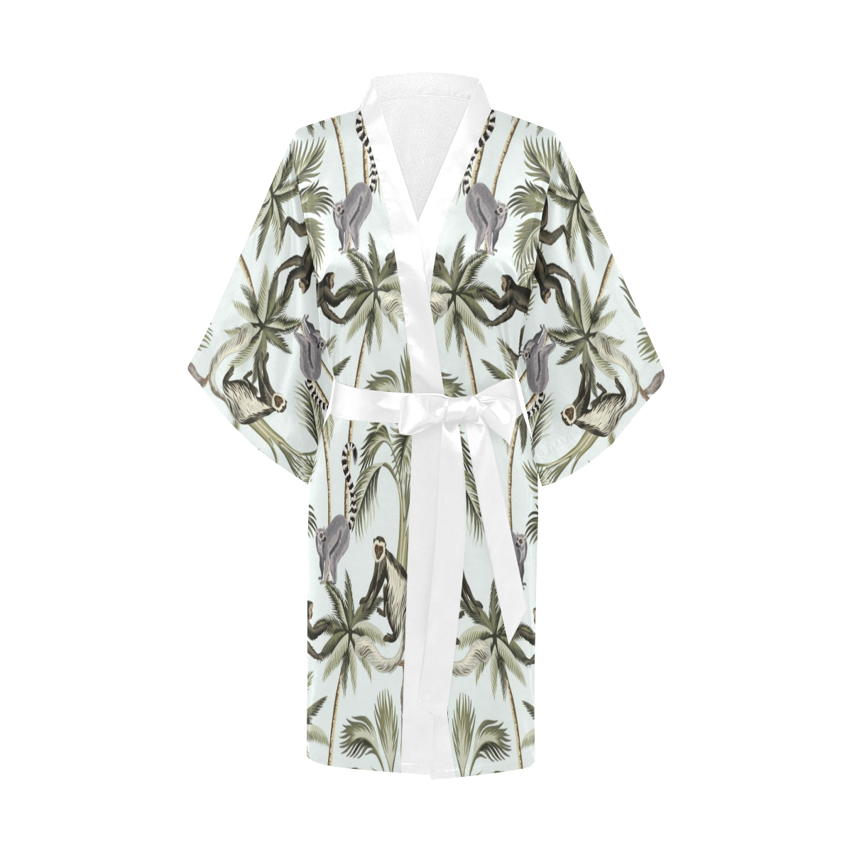 Monkey sloth lemur palm trees pattern Women's Short Kimono Robe is a uniqued design and limited item. It made to order, hand printed, and sewn with love in our factory.