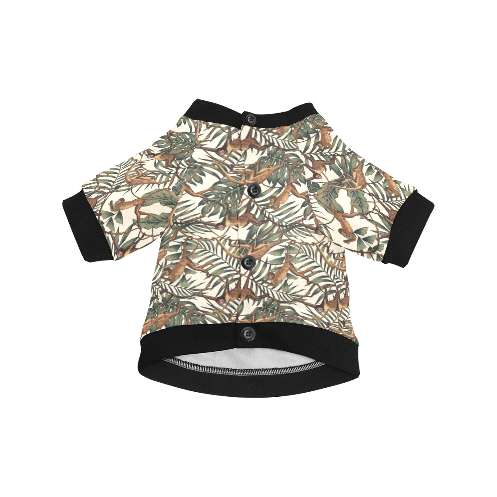 Monkey tropical leaves background All Over Print Pet Dog Round Neck Fuzzy Shirt