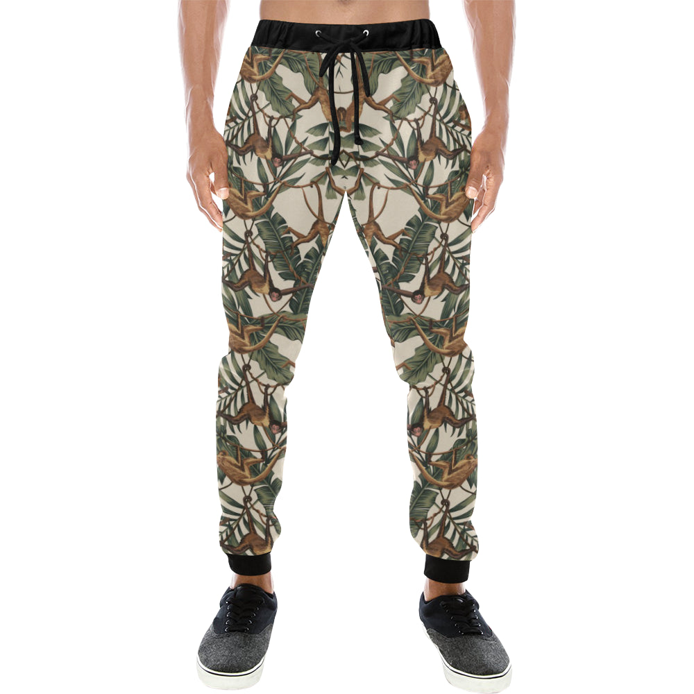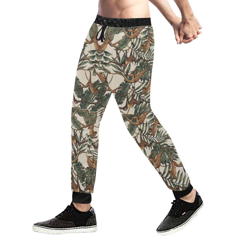 Monkey tropical leaves background Unisex Casual Sweatpants