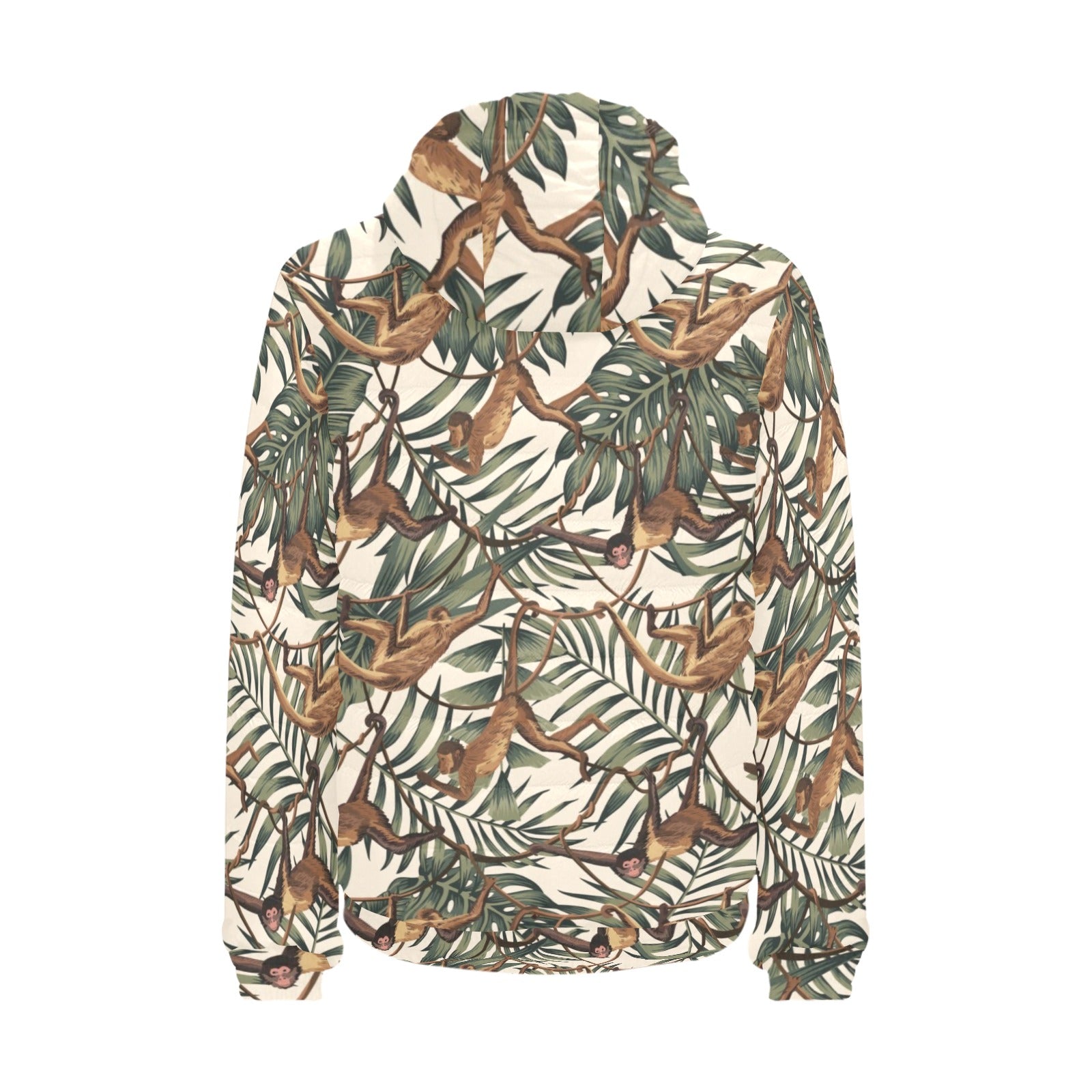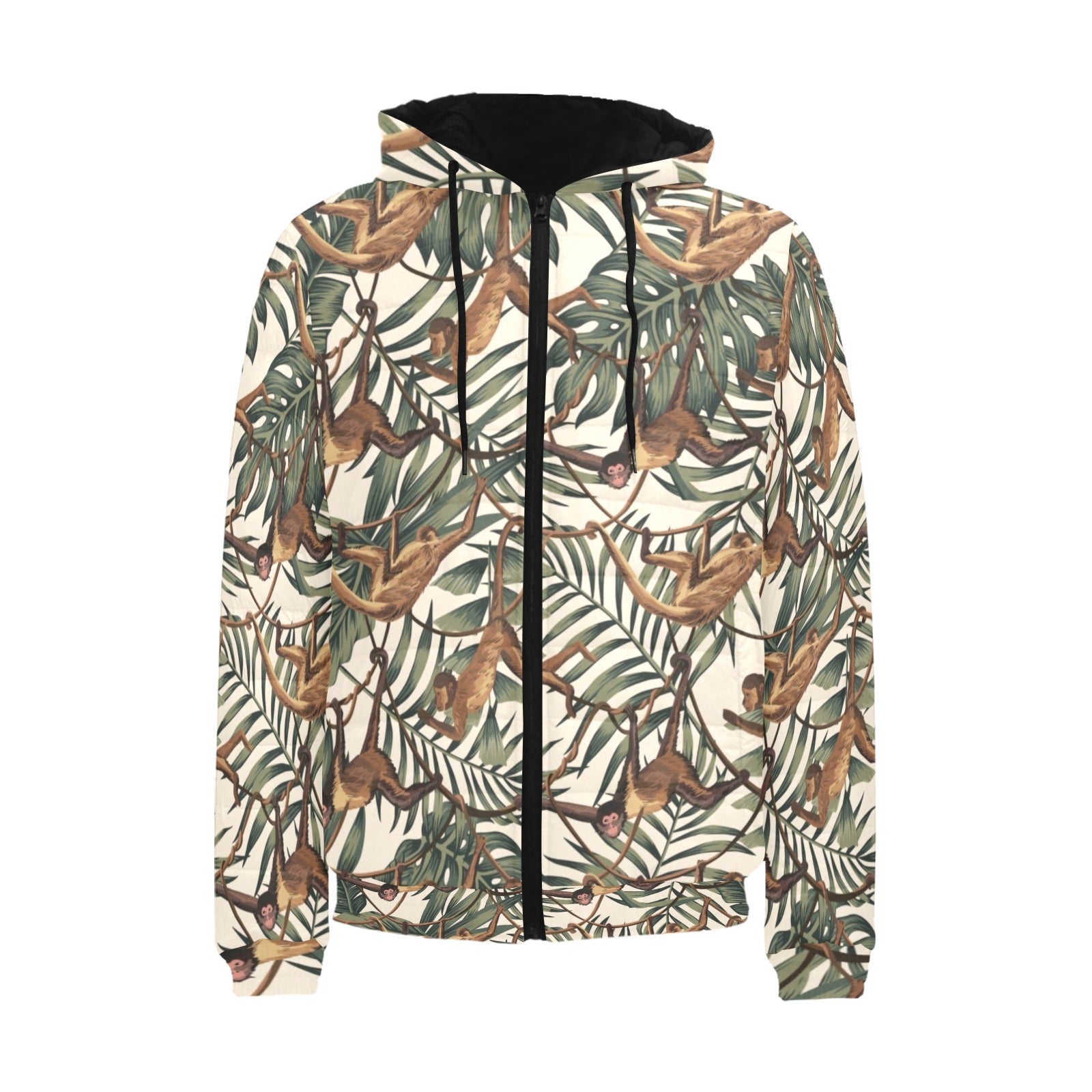 Monkey tropical leaves background Men's Padded Hooded Jacket