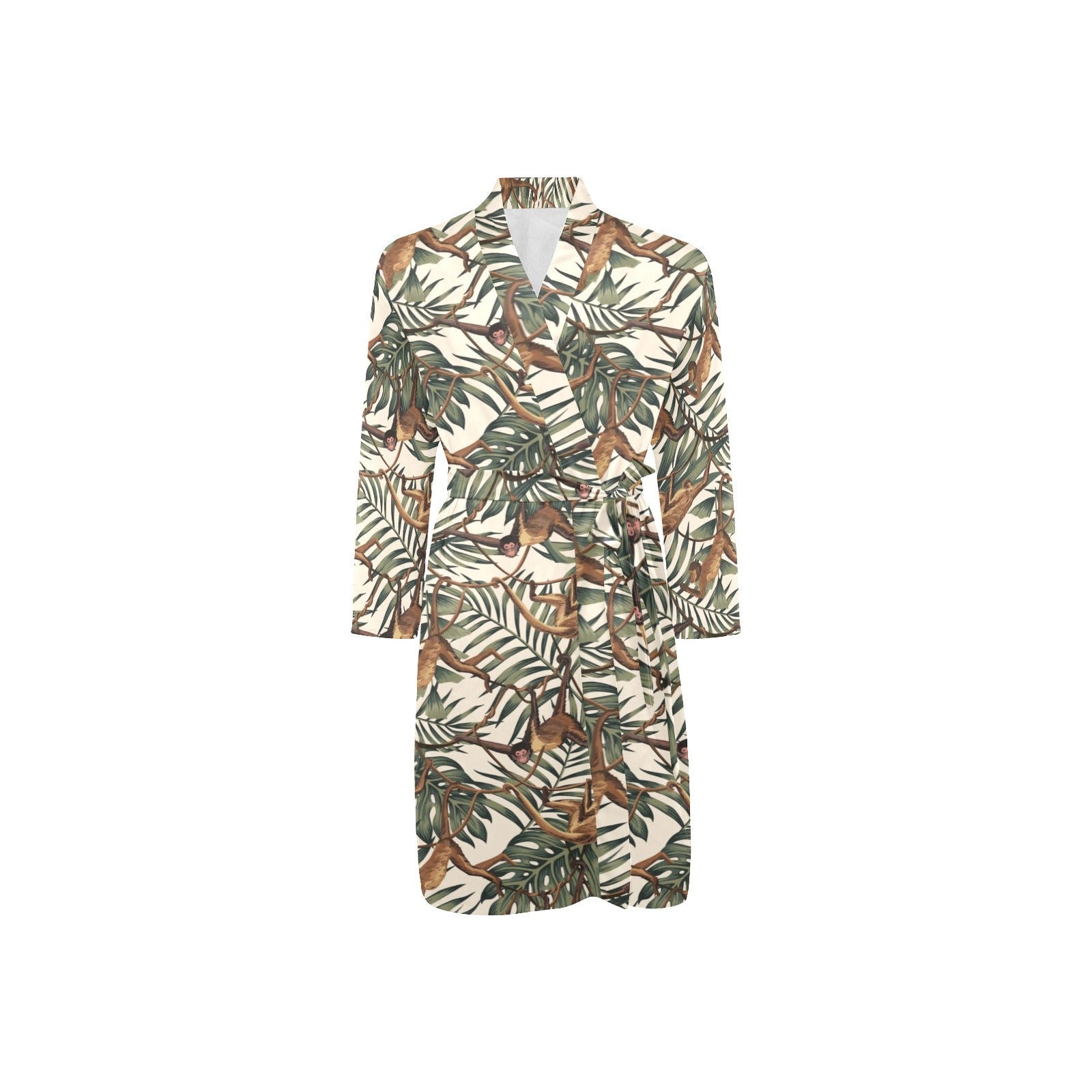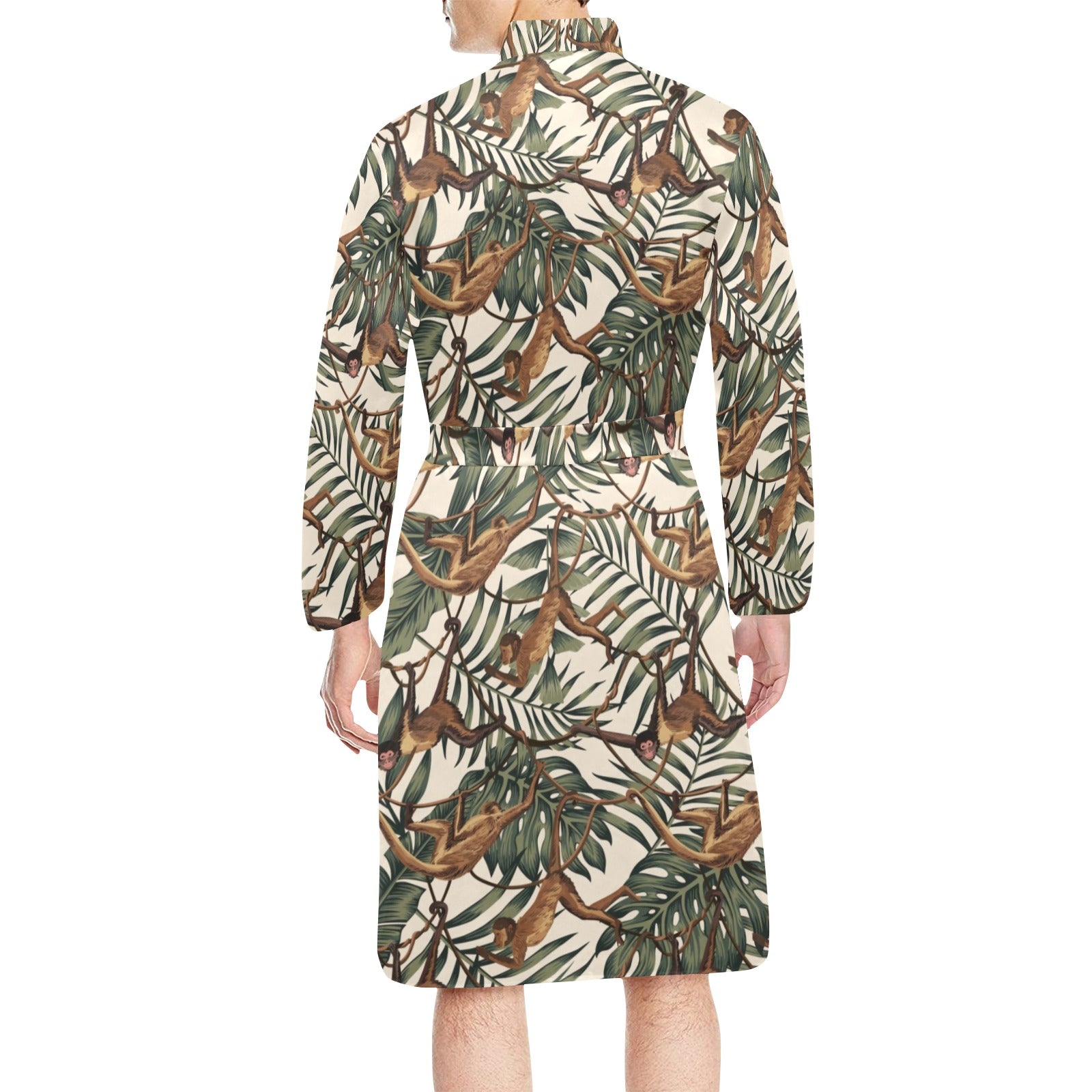Monkey tropical leaves background Men's Long Sleeve Belted Night Robe