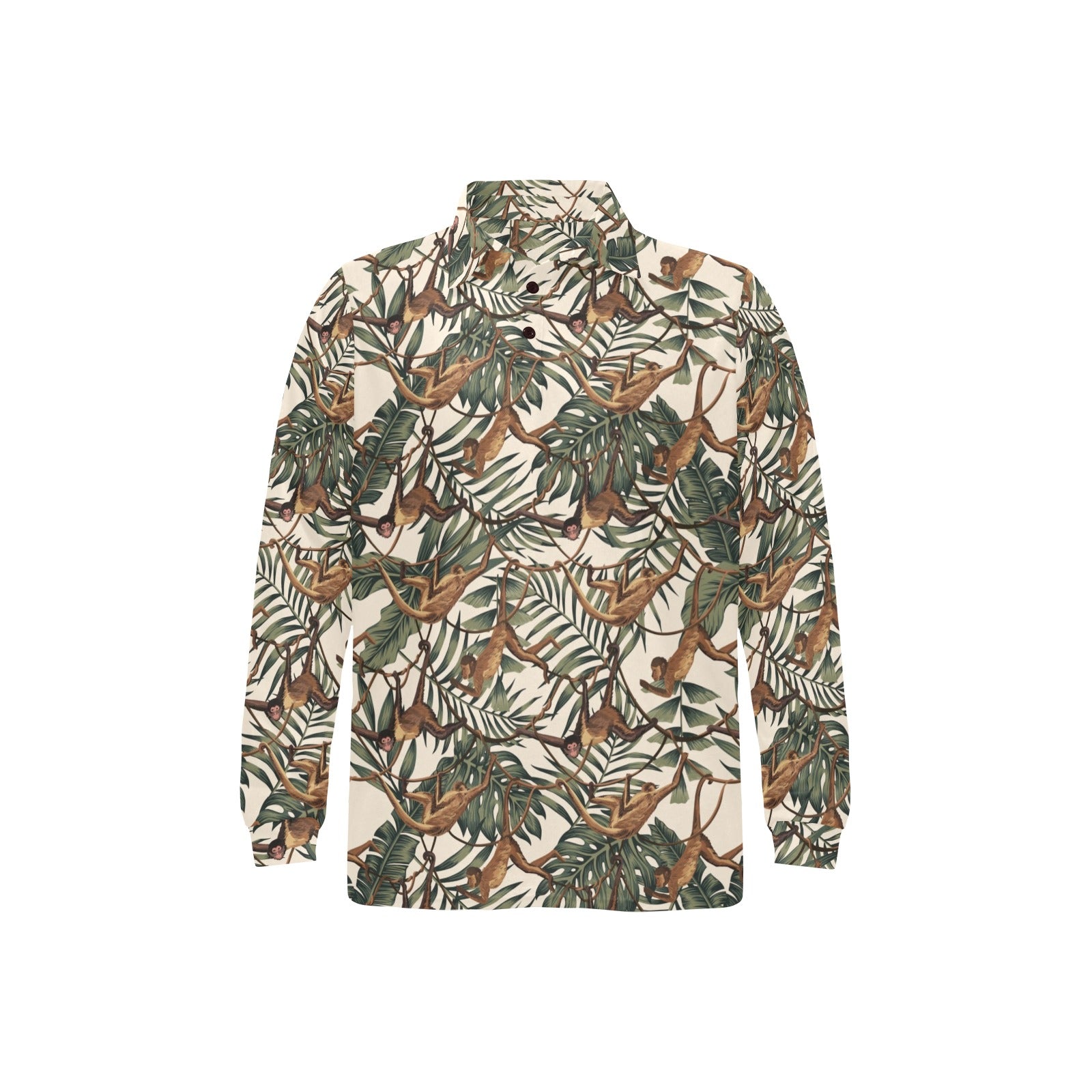 Monkey tropical leaves background Men's Long Sleeve Polo Shirt