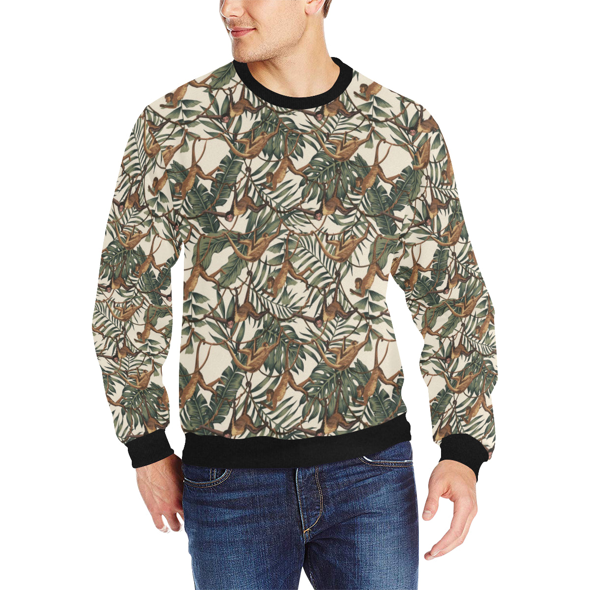Monkey tropical leaves background Men's Crew Neck Sweatshirt