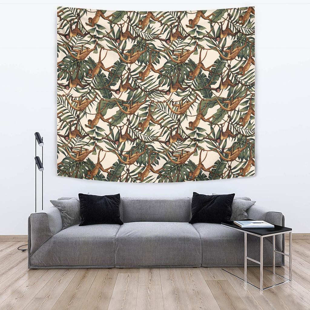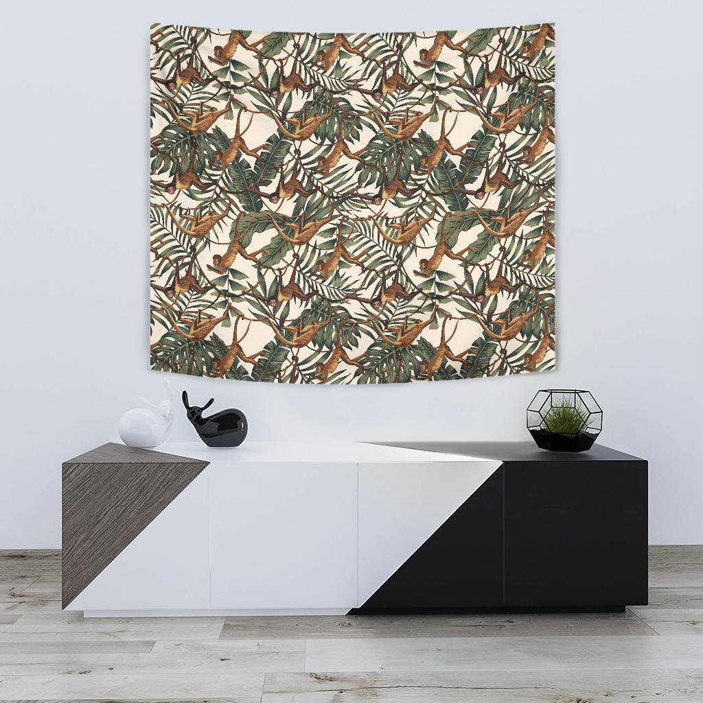 Monkey tropical leaves background Tapestry is a uniqued design and limited item. It made to order, hand printed, and sewn with love in our factory.