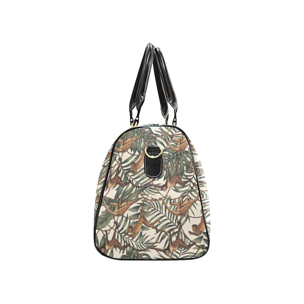 Monkey tropical leaves background Travel Bag