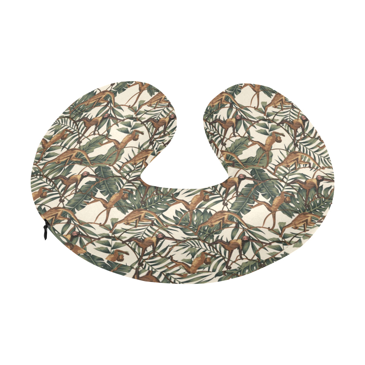 Monkey tropical leaves background U-Shaped Travel Neck Pillow