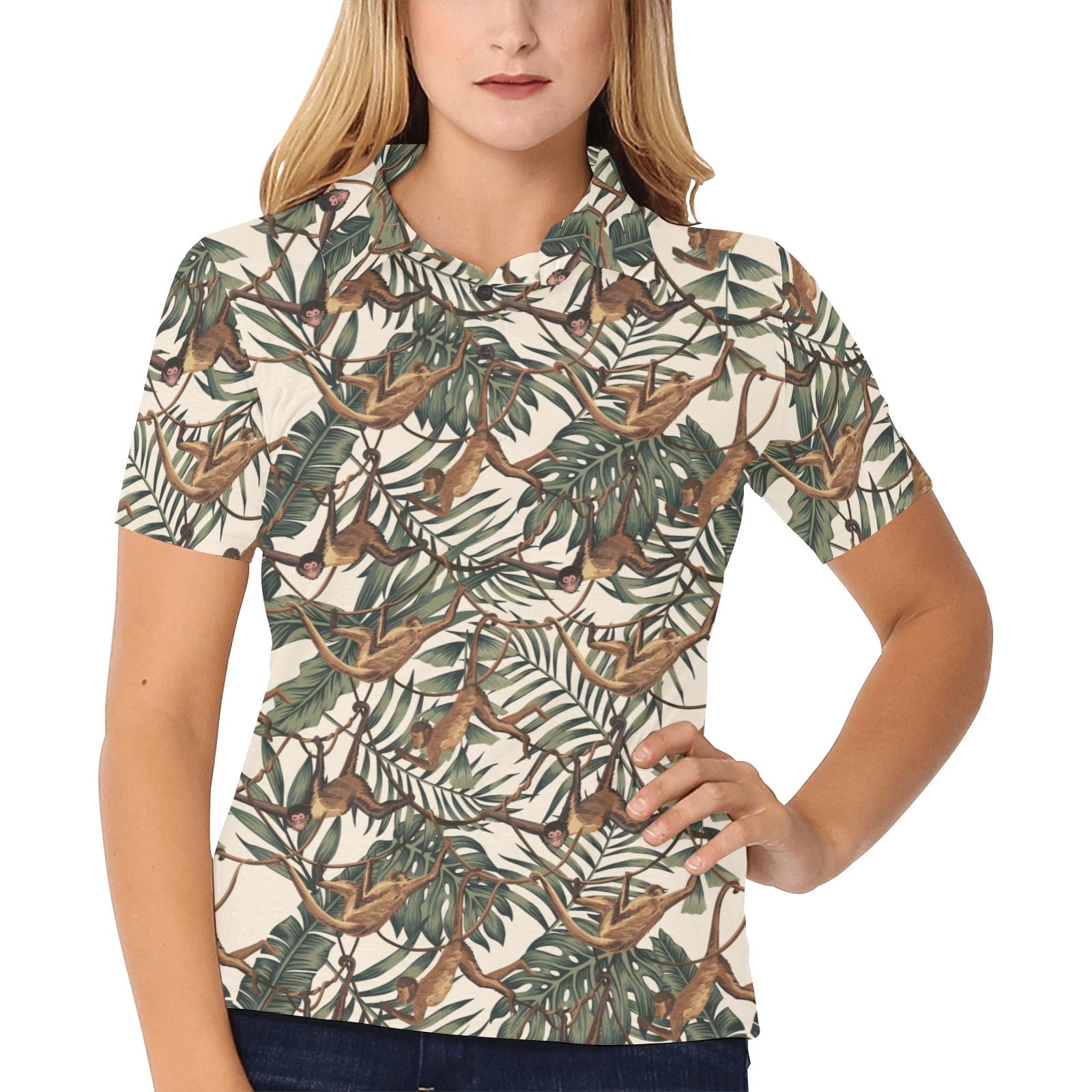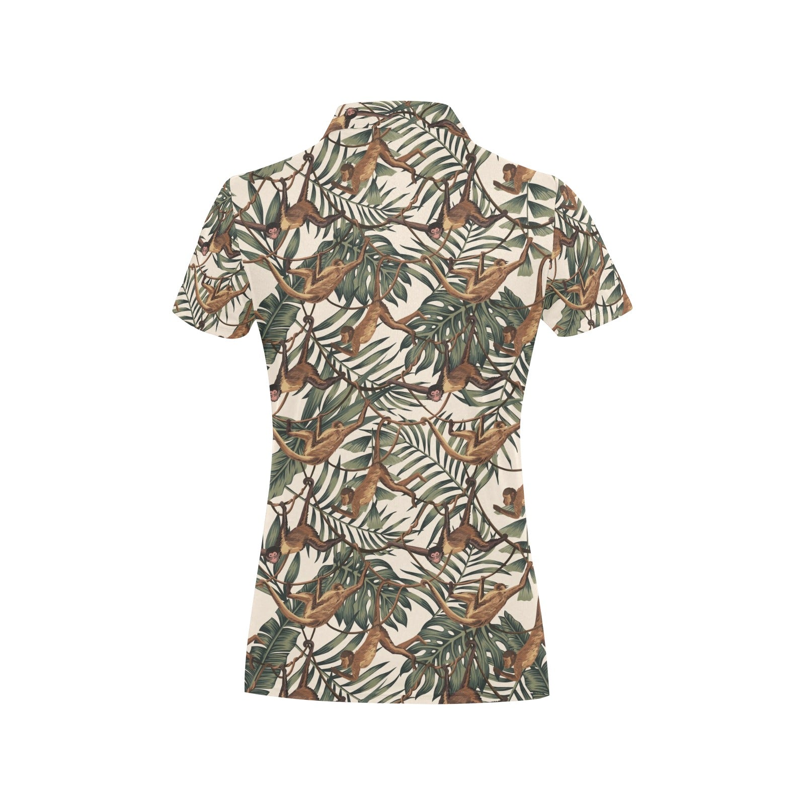 Monkey tropical leaves background Women's All Over Print Polo Shirt