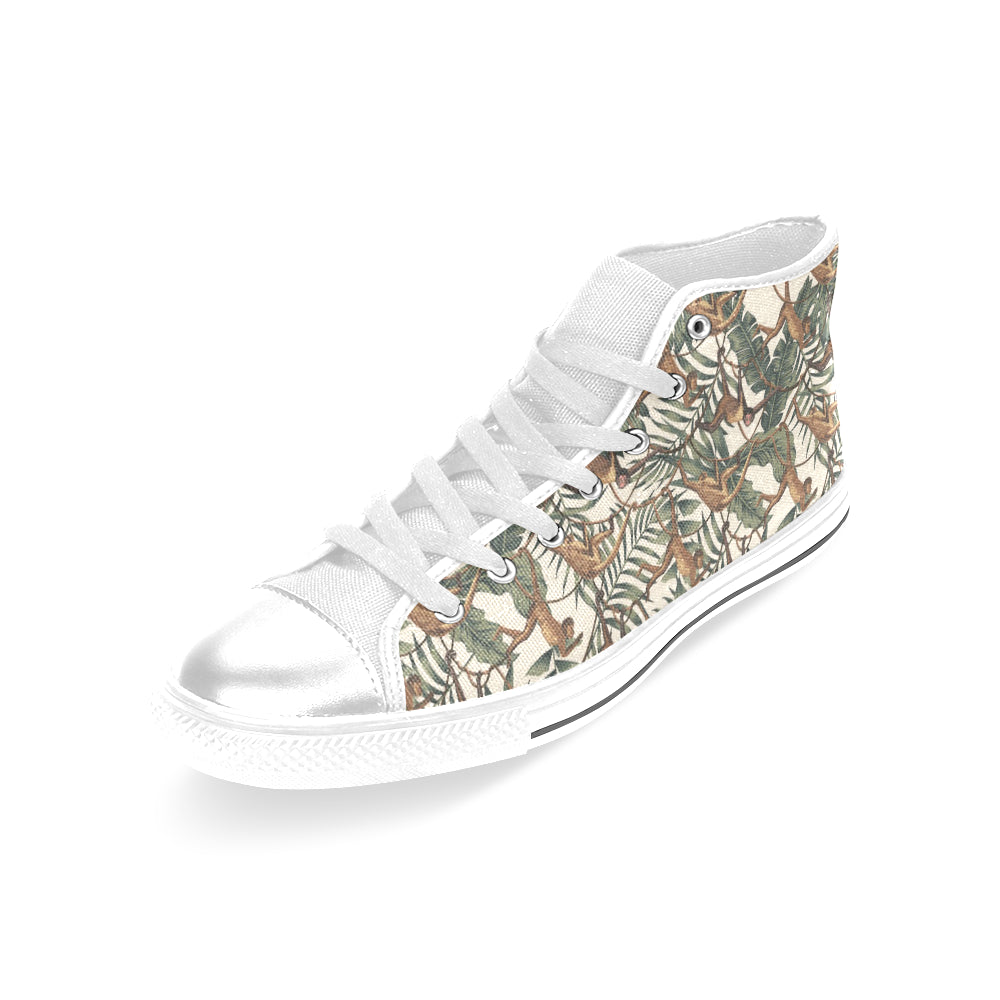 Monkey tropical leaves background Women's High Top Canvas Shoes White
