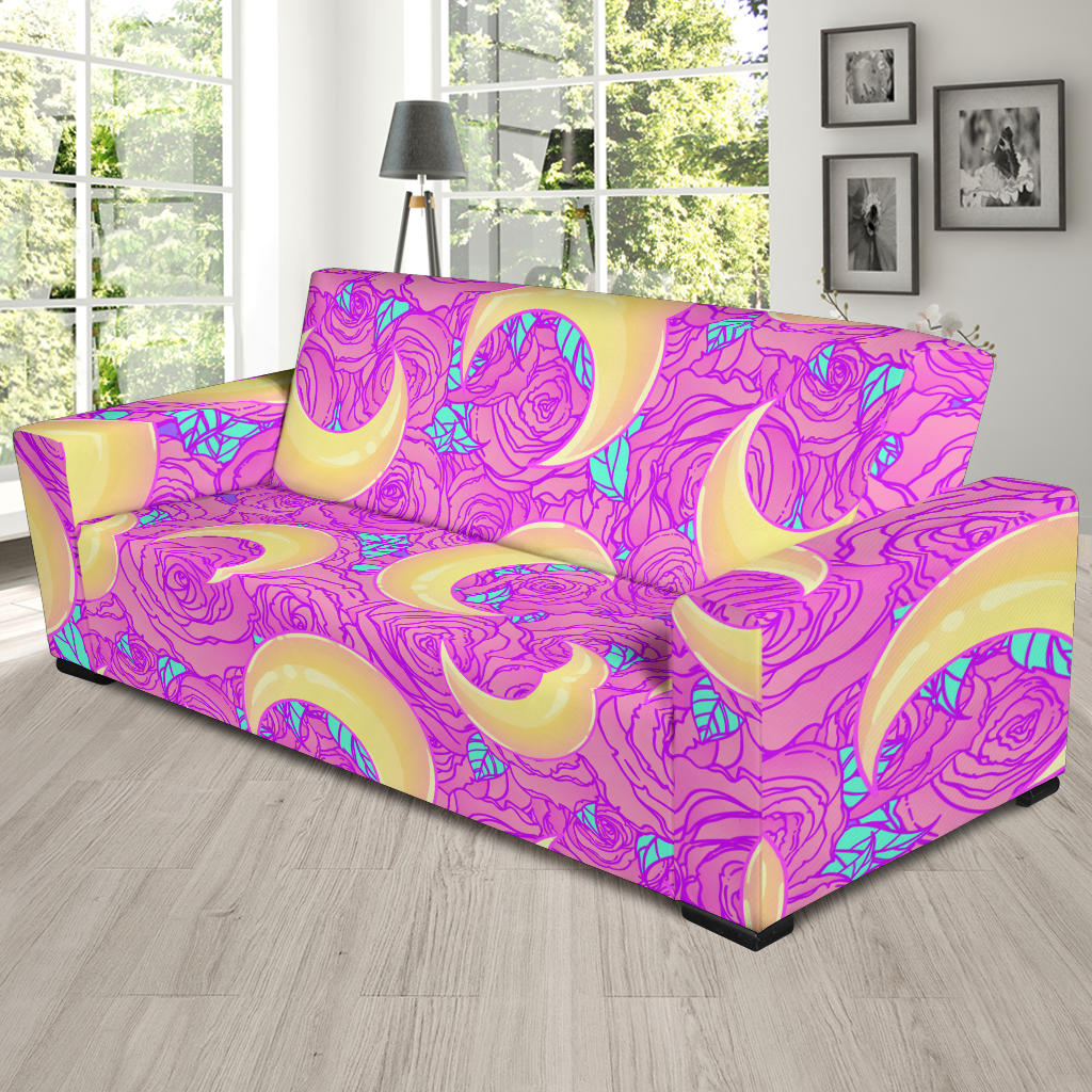 Moon Pink Rose Background Sofa Slipcover