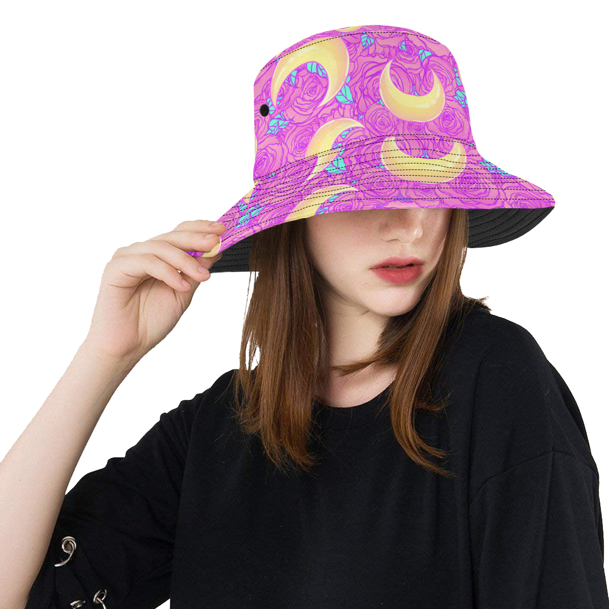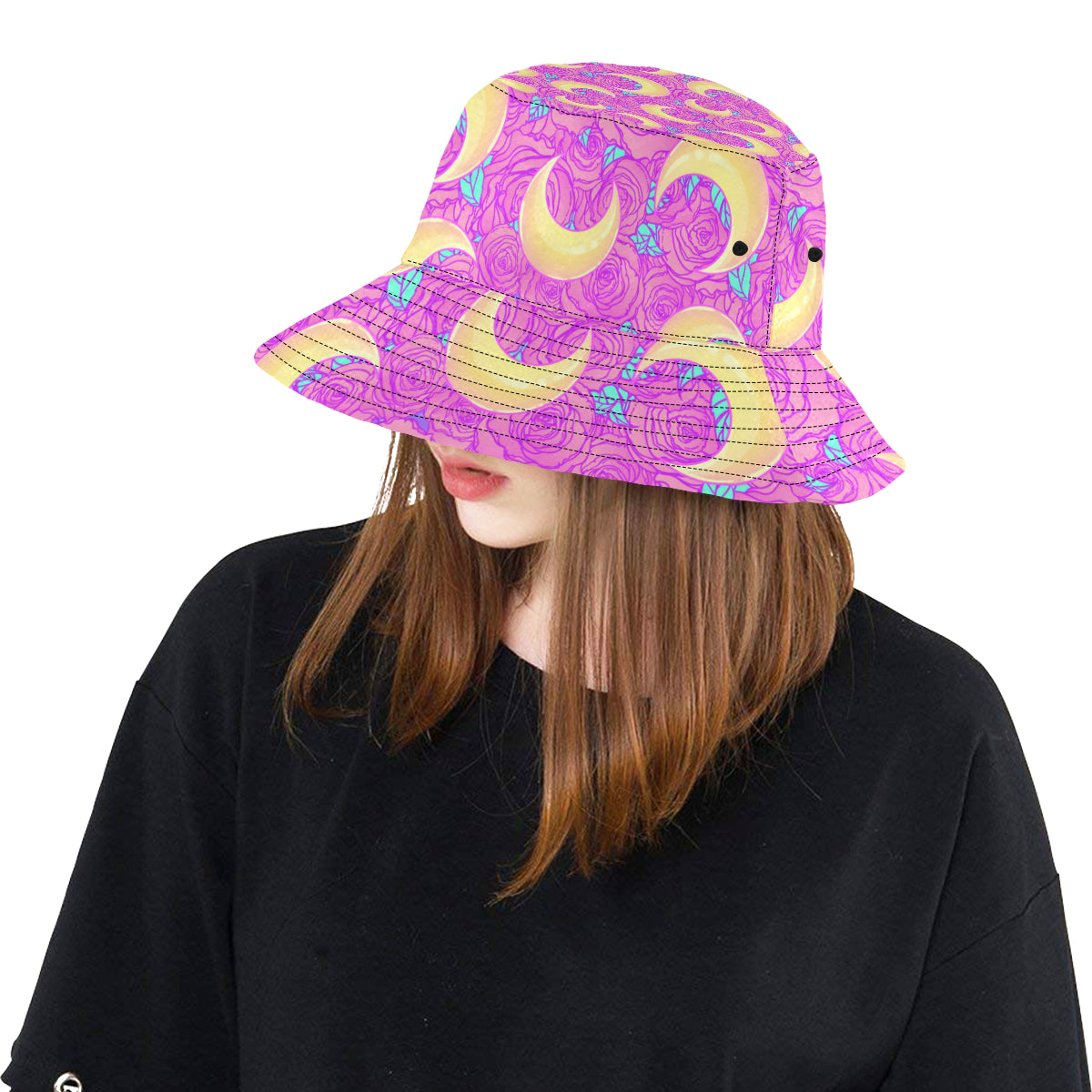Moon pink rose background Unisex Bucket Hat is a uniqued design and limited item. It made to order, hand printed, and sewn with love in our factory.