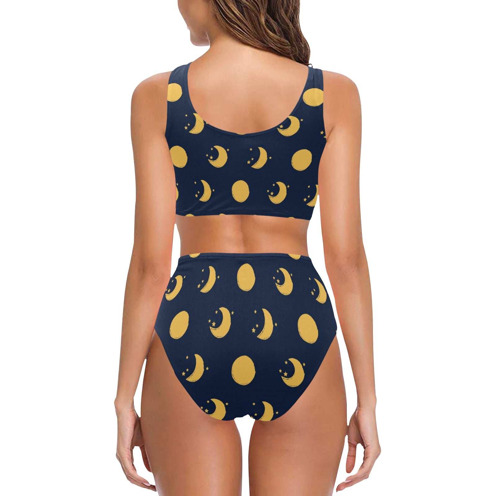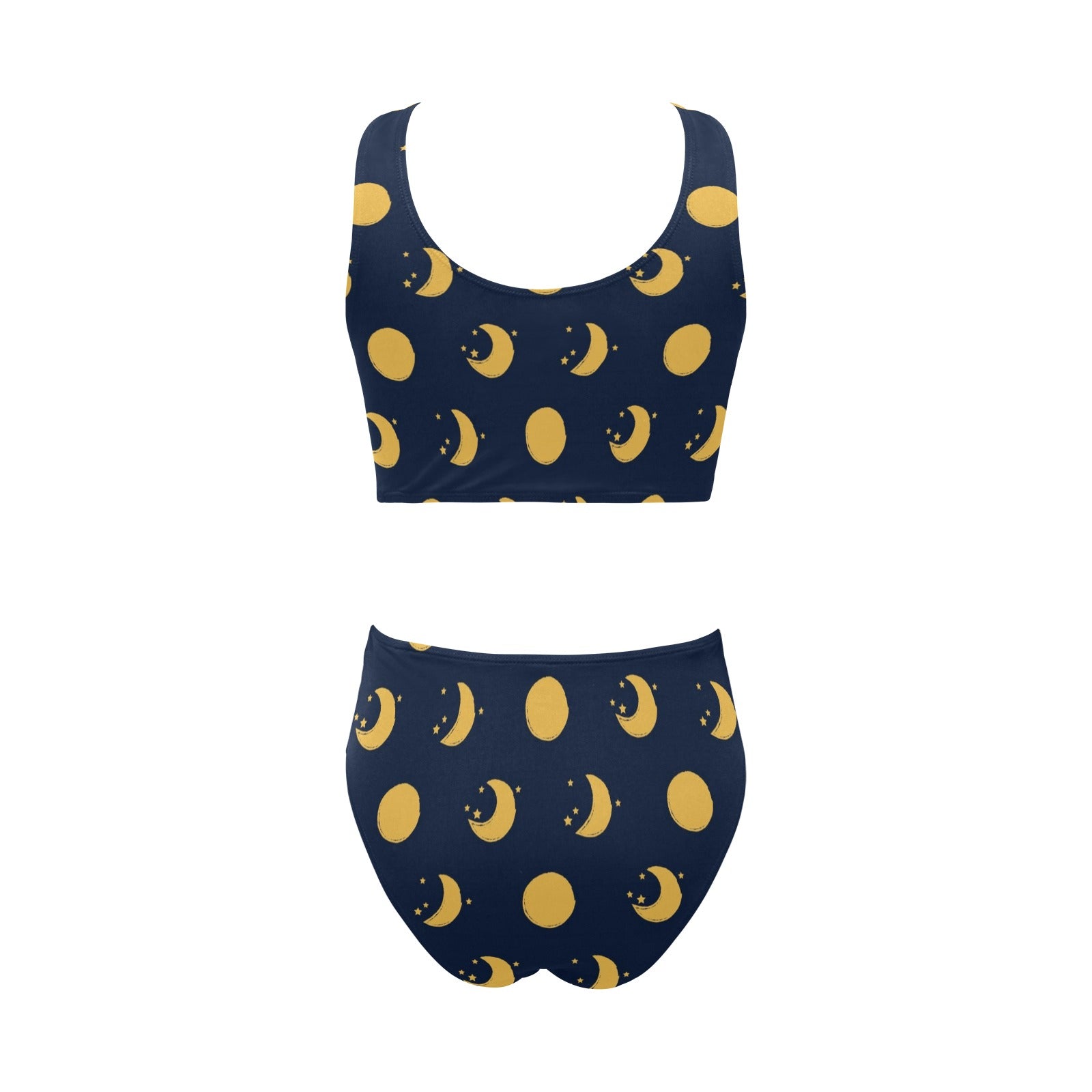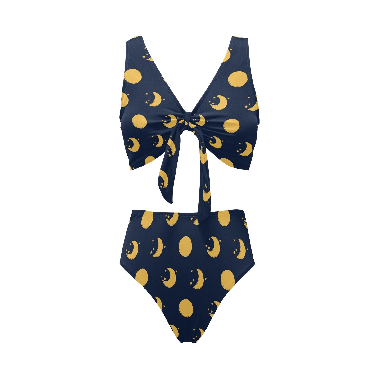 Moon star pattern Chest Bowknot High Waisted Bikini Swimsuit