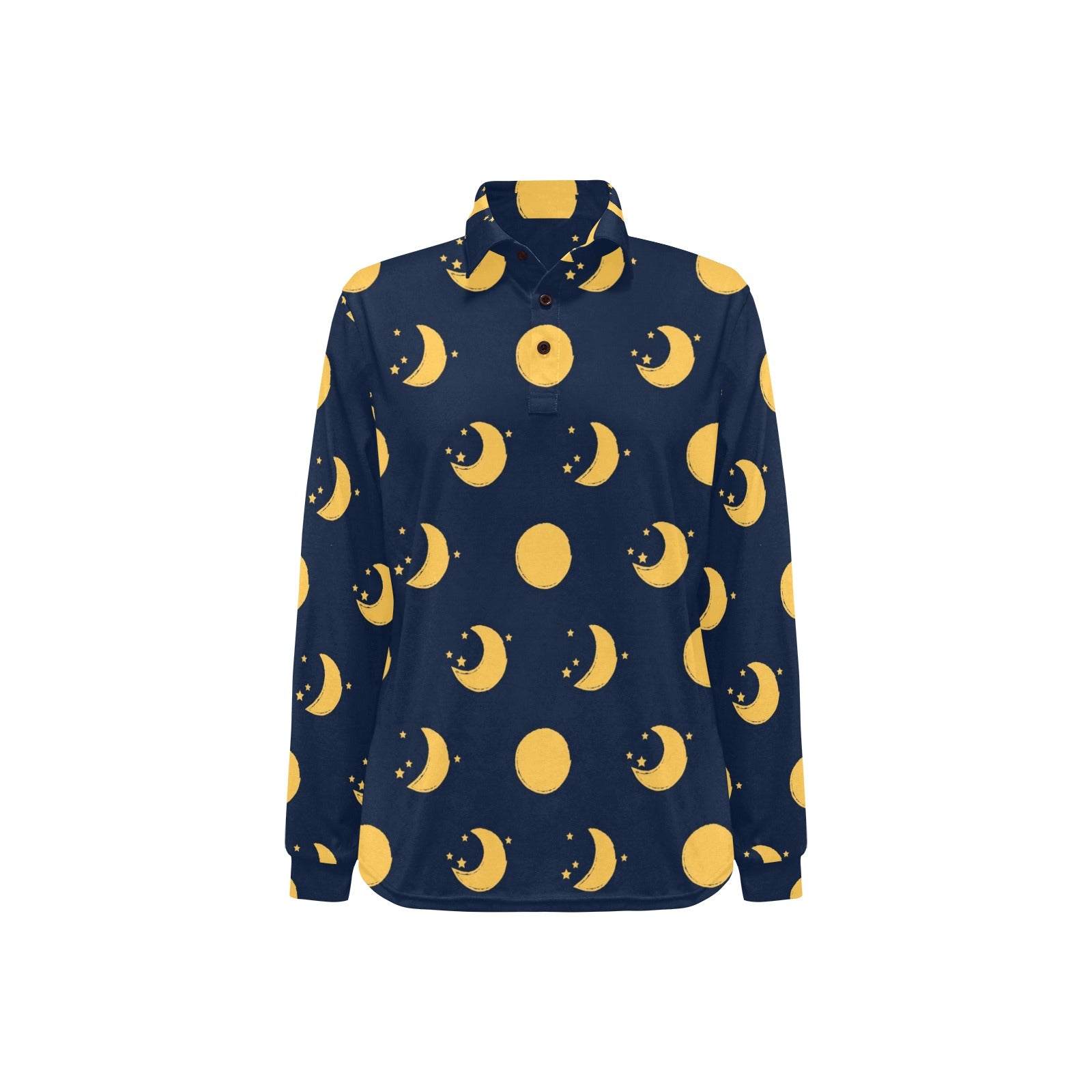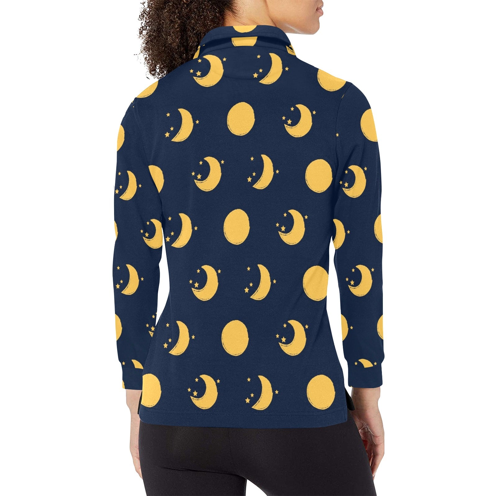 Moon star pattern Women's Long Sleeve Polo Shirt