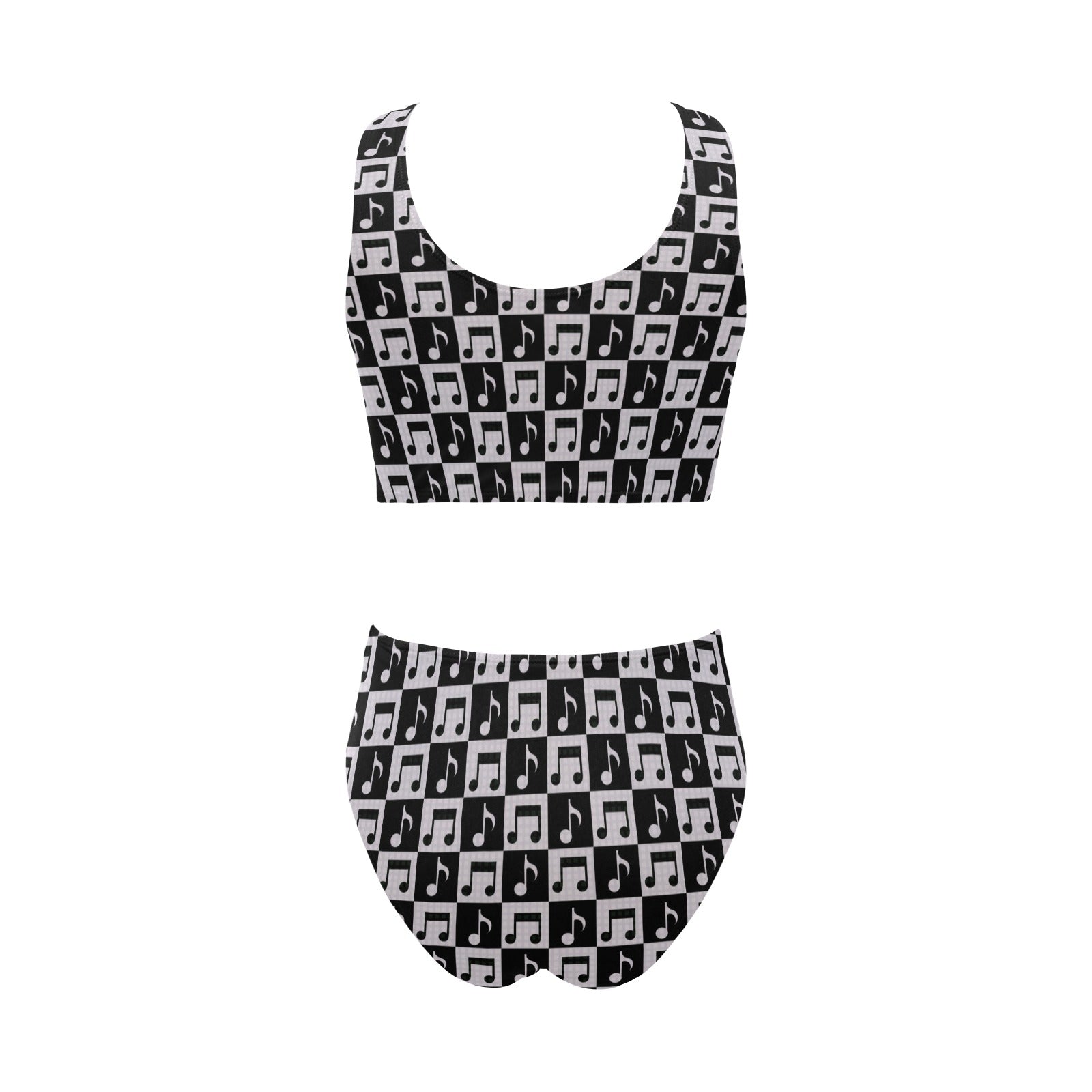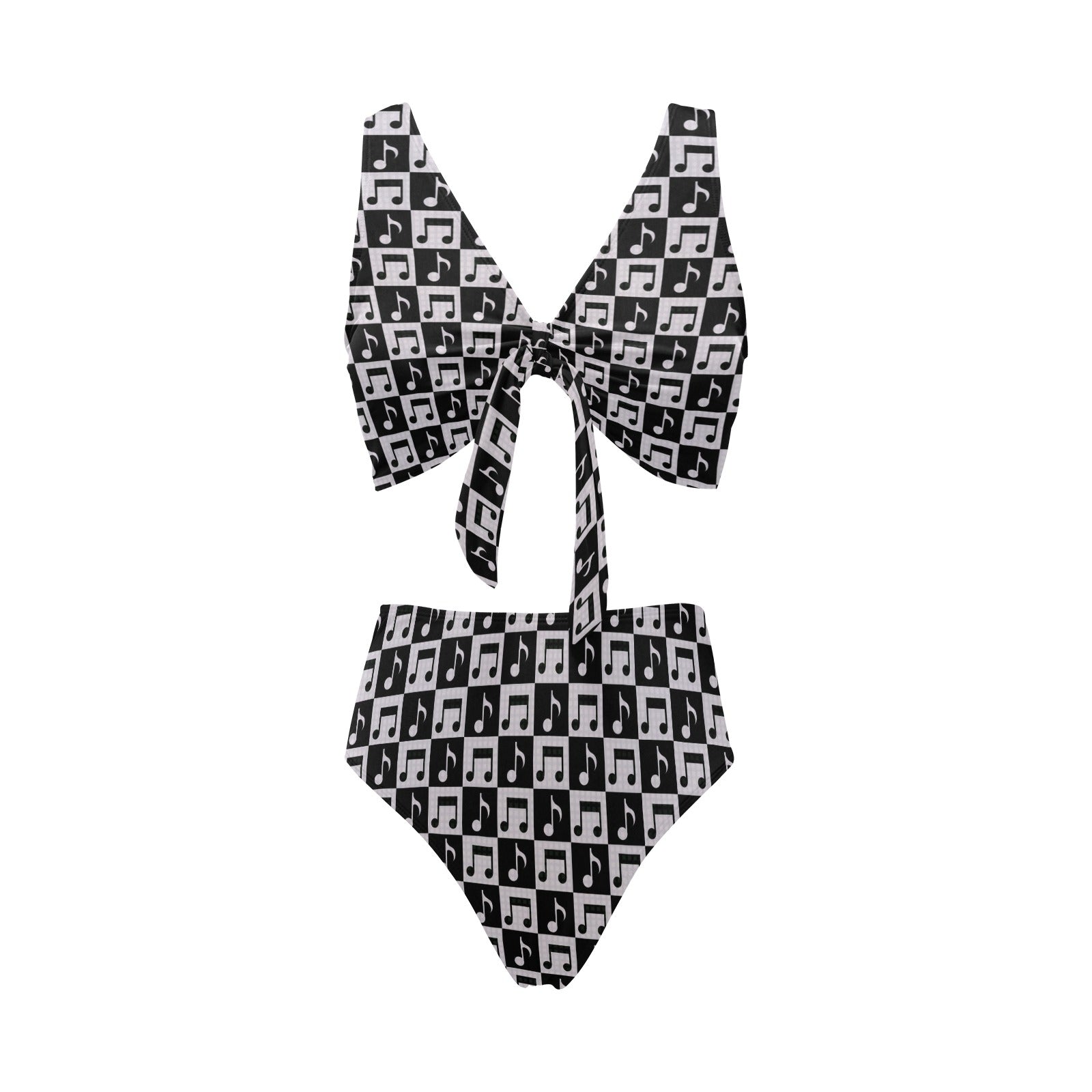 Music Notes Pattern Print Design 01 Chest Bowknot High Waisted Bikini Swimsuit
