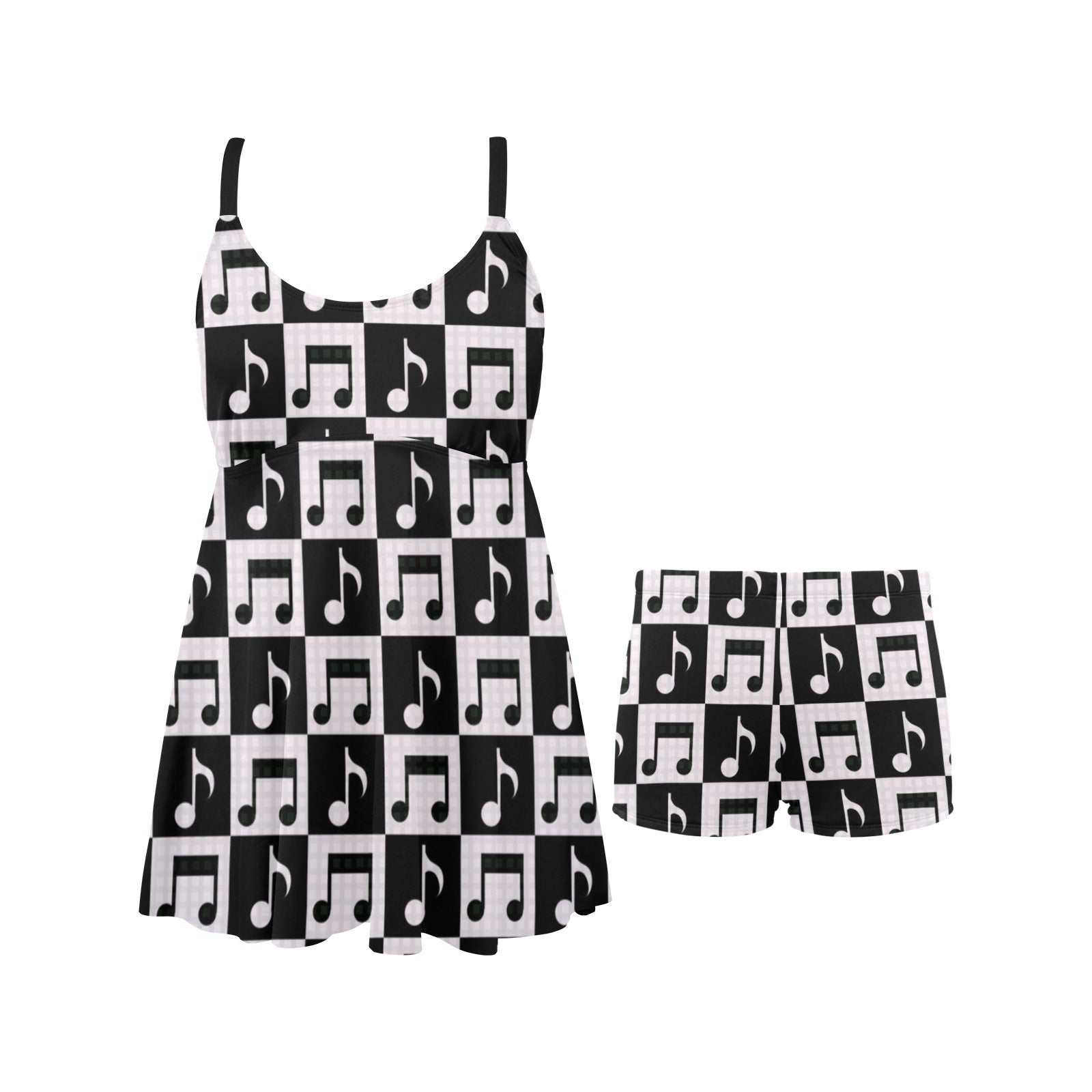 Music Notes Pattern Print Design 01 Chest Sexy Pleated Two Piece Swim Dress