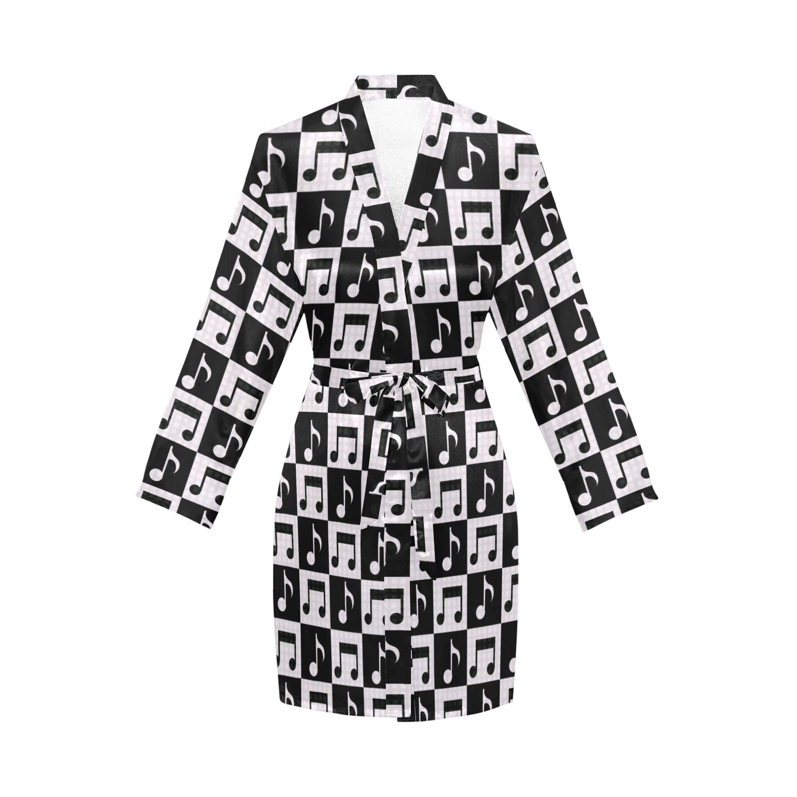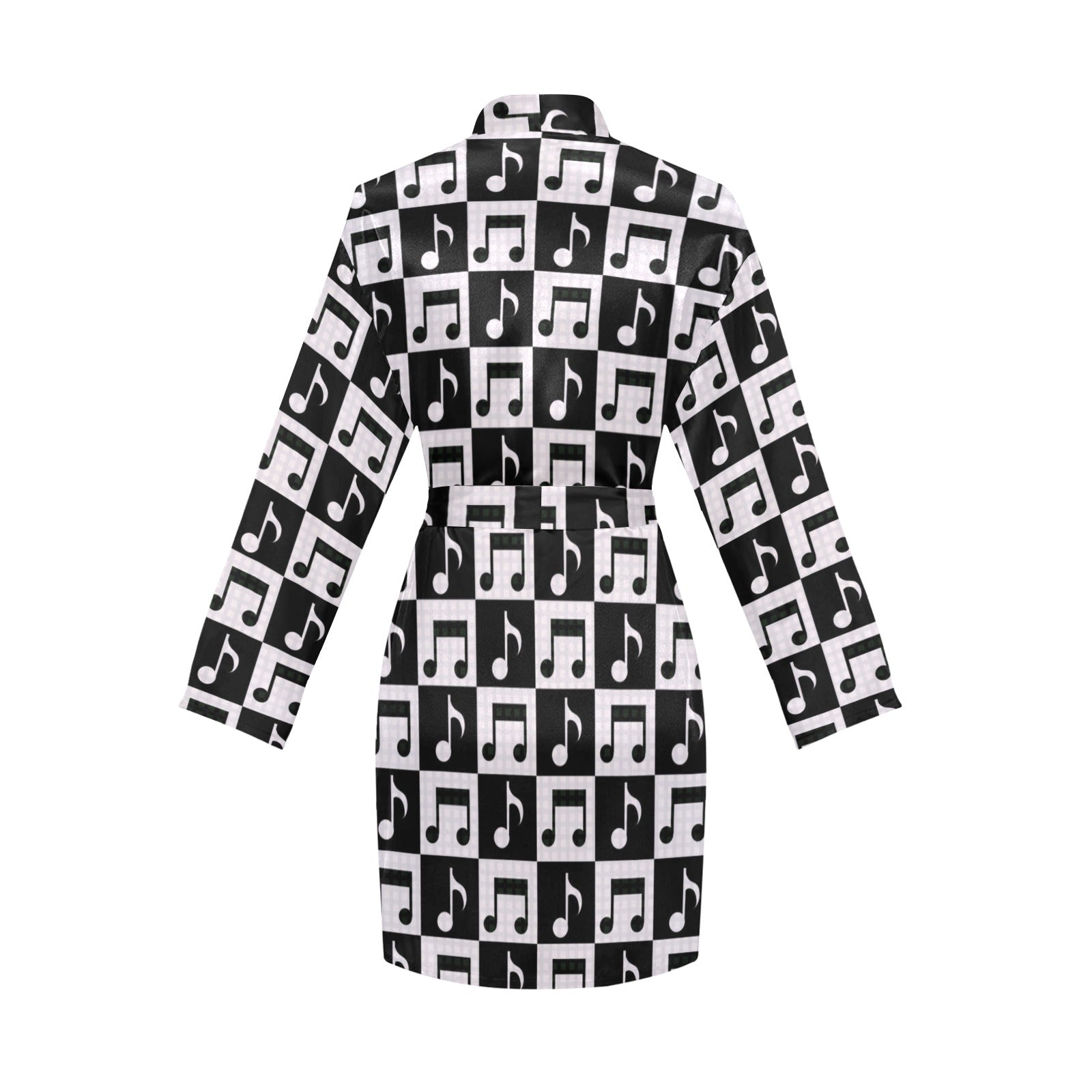 Music Notes Pattern Print Design 01 Women's Long Sleeve Belted Night Robe