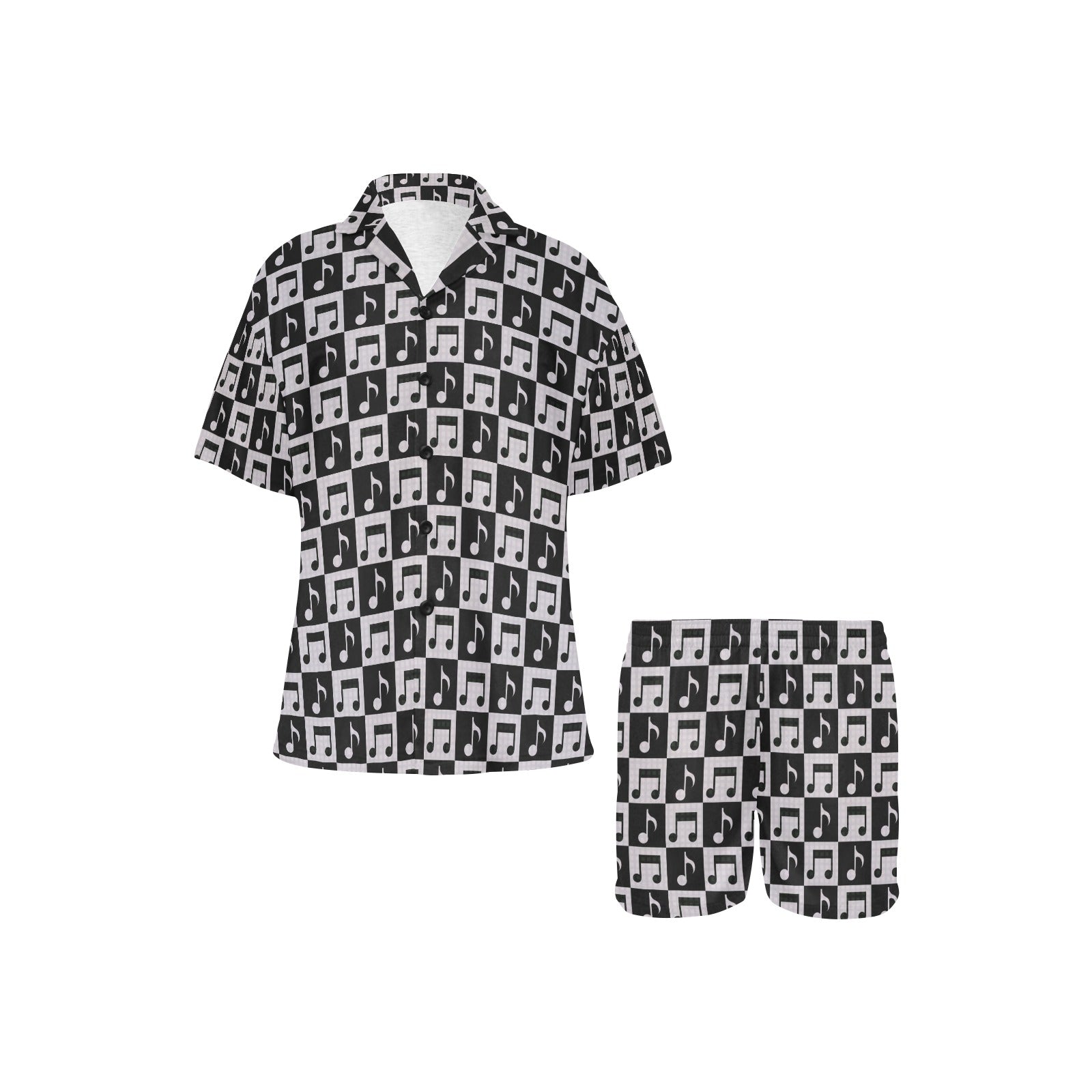 Music Notes Pattern Print Design 01 Women's V-Neck Short Pajama Set